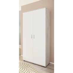 Armoire Halula 2 Portes, 1 Tringle Et 2 étagères-blanc/chêne