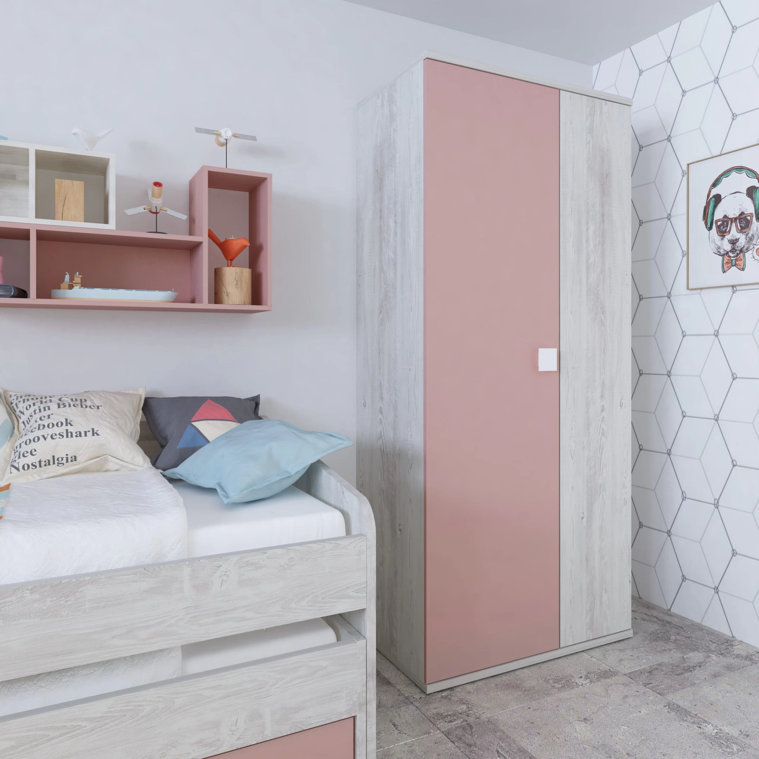 Vous avez déjà un lit, une table de chevet et une commode de la collection Bo ? Alors complétez votre chambre à coucher avec l’armoire Bo0! Derrière les portes de cette armoire spacieuse se trouvent deux étagères et une tringle à vêtements. Vous pouvez donc aussi bien suspendre que poser vos vêtements dans cette armoire. Cette armoire dispose d’une grande porte vieux rose avec une poignée de porte carrée et d’une porte légèrement plus petite en aspect bois. Comme les autres produits de la collection Bo, l’armoire Bo0 est fabriquée en panneaux de particules et dotée d’une finition mélaminée de haute qualité.L’armoire Bo0 est également disponible sur notre site web dans d’autres couleurs et avec d’autres poignées de porte.