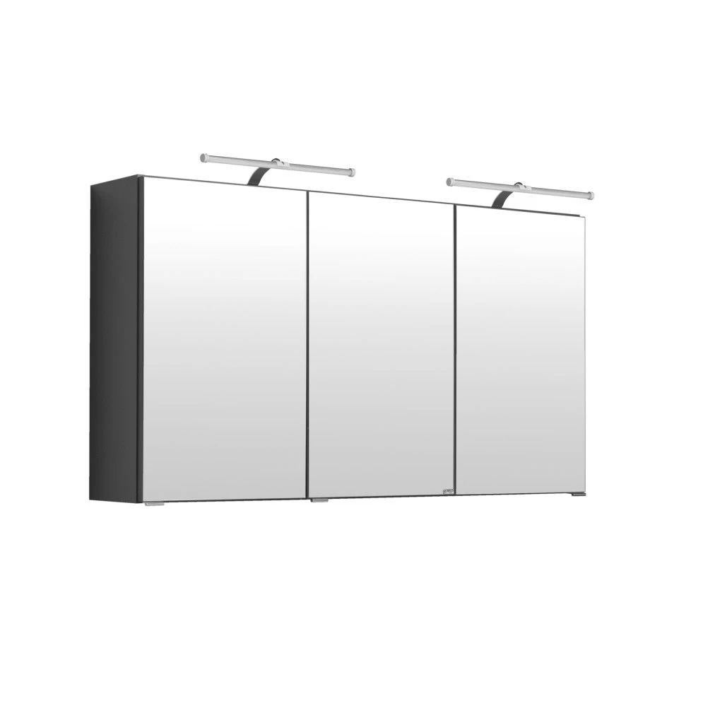Relookez votre salle de bains avec les meubles élégants en gris graphite de la collection Bobbi, qui comprend également cette armoire de toilette de 120 cm de large. L’armoire est équipée de 3 portes, de 6 étagères en verre, d’éclairage LED (4,5 W), d’un interrupteur et d’une prise de courant.