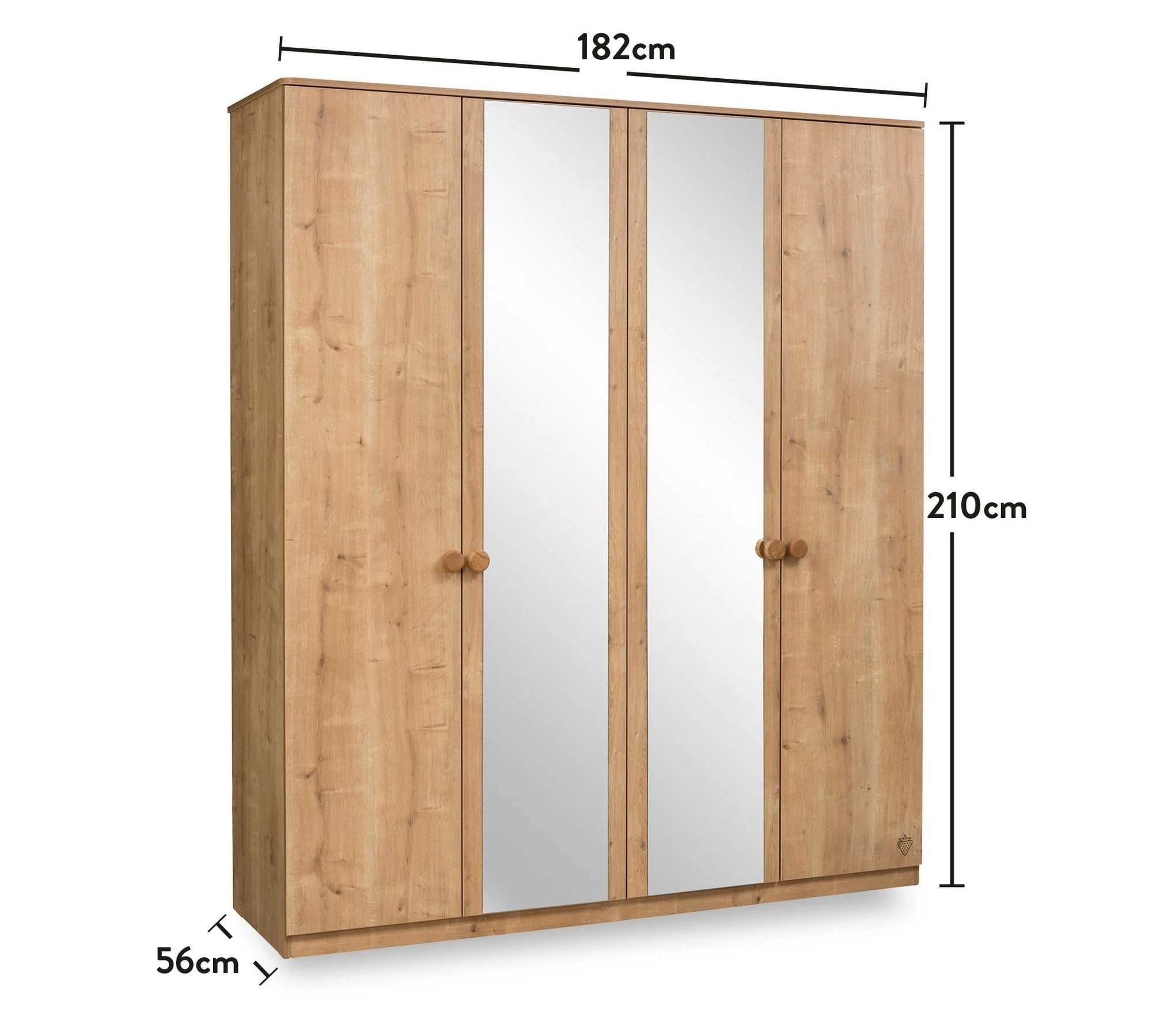 Mesurant 182 cm de largeur, 210 cm de hauteur et 56 cm de profondeur, l’armoire offre un vaste espace de rangement pour tous vos vêtements et accessoires. Elle est équipée de tiroirs et de nombreuses étagères, ce qui vous permet d’organiser vos affaires sans effort. Dites adieu aux espaces encombrés et bonjour à une armoire plus organisée et plus fonctionnelle.