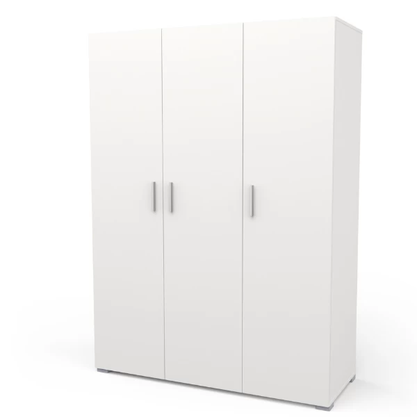 Armoire Maura trouvera facilement sa place dans la plupart des chambres à coucher grâce à sa couleur blanc mat neutre et sa conception intemporelle. Derrière les 3 portes tournantes il y a 5 étagères et une tringle pour votre garde-robe personnelle. Sur l’étagère en haut et sous l’étagère en bas vous pouvez éventuellement mettre de la literie. Combinez avec le lit simple Maura, la table de chevet Maura et le chiffonnier Maura et vous avez une belle chambre d’adolescent. Vis et chevilles pour montage mural non-inclus.