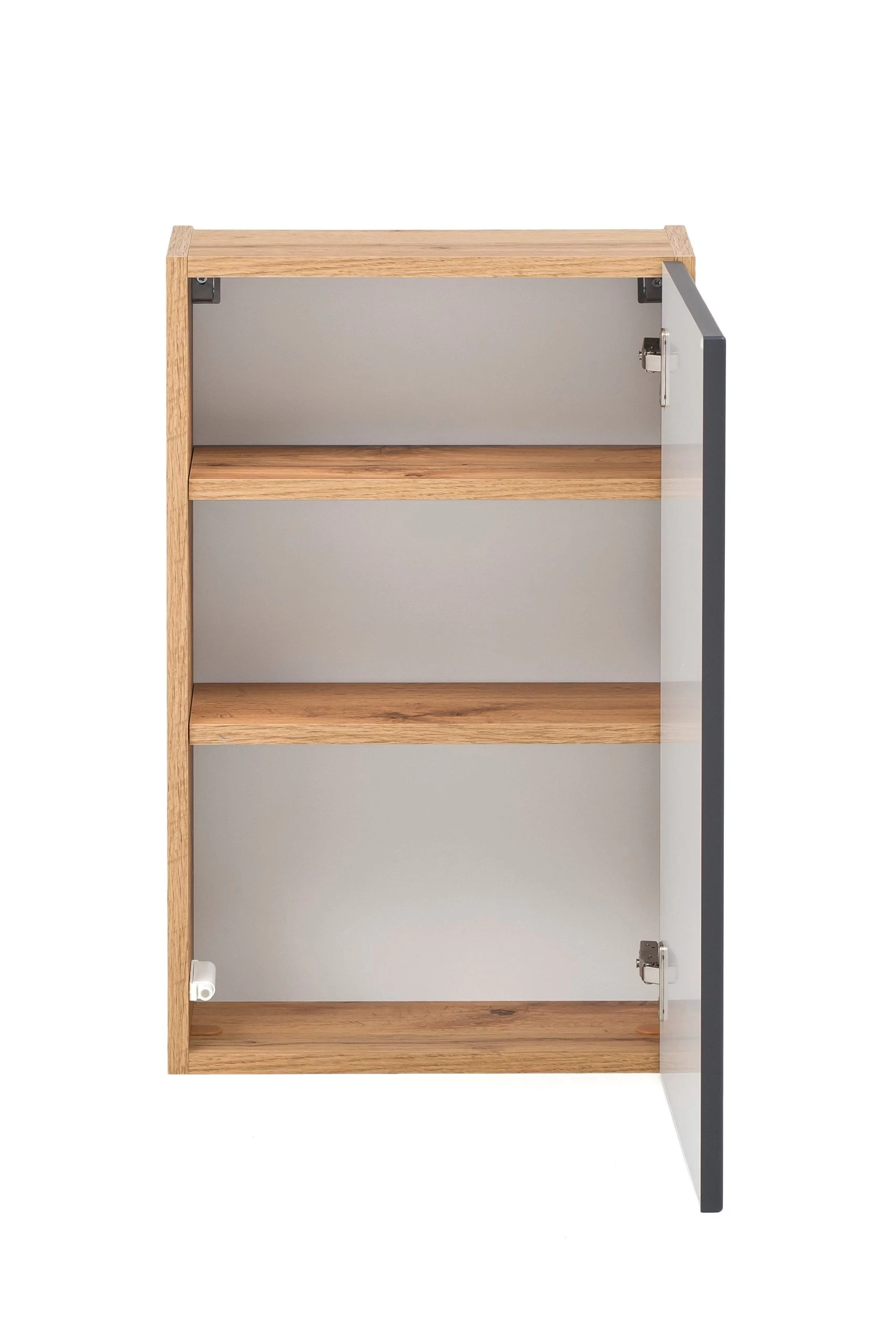 Les meubles de les collections Kornel et Luna vous permettent de combiner à l’infini pour créer votre salle de bains idéale. Cette armoire murale a 40 cm de large et est réalisée en panneaux de particules mélaminés avec décor en chêne. Elle est équipée d’une porte en gris mat qui s’ouvre et se ferme en la poussant doucement (système « push to open »). Grâce à son design sans prise de main, l’armoire murale Kornel instaure une ambiance moderne et apaisante dans la salle de bains. Elle est également équipée de 2 étagères sur lesquelles vous pourrez ranger vos produits de soins, quelques accessoires ou des médicaments.