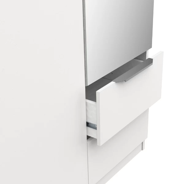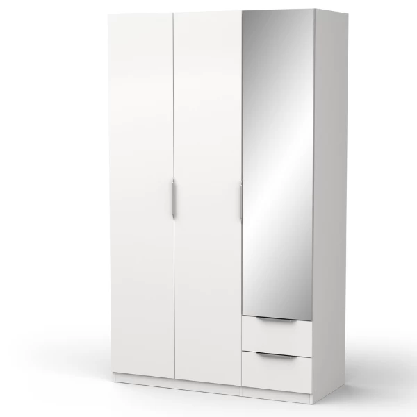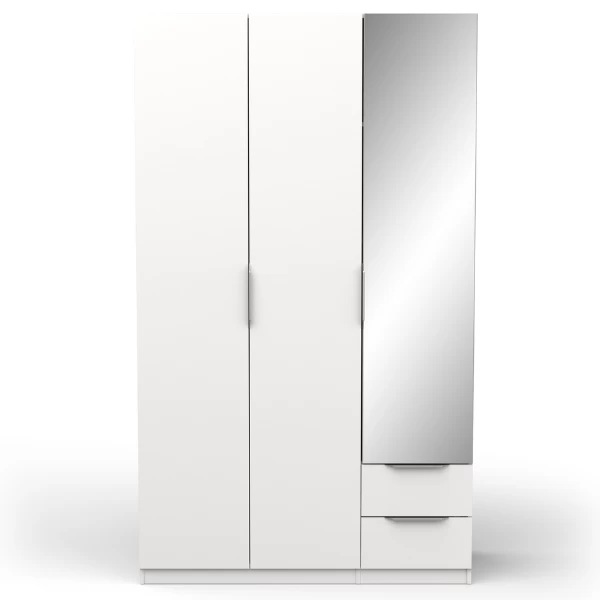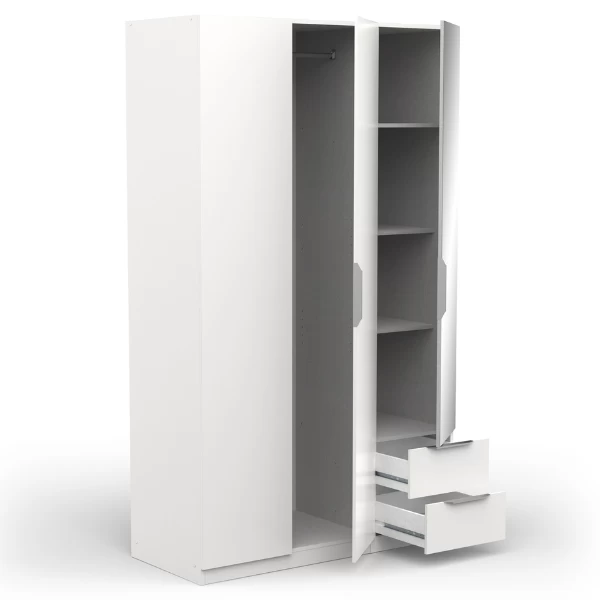 De l’entrée à la chambre à coucher, les armoires Spectre vous offrent un espace de rangement pour tous vos vêtements. Fabriquée en panneaux de particules, cette armoire est finie en mélaminé blanc mat. Les poignées en aluminium ajoutent une touche de modernité. Sur le côté gauche, l’armoire est équipée d’une tringle pour suspendre les vêtements. Sur le côté droit, trois étagères et deux tiroirs de rangement offrent un espace de stockage supplémentaire. Grâce au miroir, vous pouvez facilement admirer votre tenue. Les armoires Spectre sont disponibles en différentes versions. Vous trouverez donc certainement l’armoire qui vous convient.
