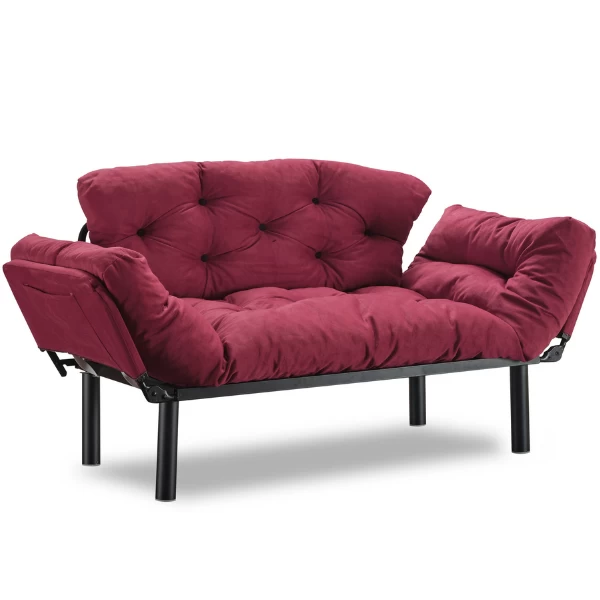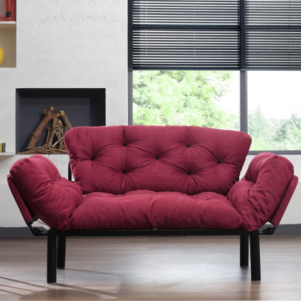 Voici l’incroyable canapé-lit 2 places, l’ajout parfait à votre salon qui apportera à la fois confort et design unique. Ce canapé-lit sera la star de votre espace, ajoutant une touche d’élégance et de fonctionnalité à votre maison. Si vous avez envie d’un changement rafraîchissant dans votre salon, ne cherchez pas plus loin que cet incroyable canapé-lit 2 places ! L’une des principales caractéristiques de ce canapé-lit est son cadre robuste, fabriqué à 100 % en métal. Cela garantit la durabilité et la stabilité, vous permettant de vous détendre et de vous relaxer en toute confiance sur ce canapé-lit pour les années à venir. Que vous regardiez la télévision, lisiez un livre ou vous détendiez simplement, ce canapé-lit vous apportera le soutien nécessaire à votre confort. Dites adieu aux problèmes de saleté et d’éclaboussures sur vos meubles. Le tissu easy clean permet un nettoyage sans effort, ce qui vous fait gagner du temps et de l’énergie. Il suffit d’essuyer les taches et les liquides renversés pour que votre canapé-lit soit comme neuf. Avec une largeur de 155 cm, une hauteur de 85 cm et une profondeur de 70 cm, ce canapé-lit 2 places a les dimensions parfaites pour s’intégrer dans n’importe quel espace de vie. Il offre suffisamment d’espace pour s’asseoir et se détendre, pour vous et vos invités, afin que tout le monde puisse s’asseoir confortablement. La profondeur d’assise de 53 cm et la largeur d’assise de 90 cm offrent un espace généreux pour la relaxation, ce qui vous permet de vous étendre et de vous détendre. Cette taille de lit convient à une personne seule et offre un espace de sommeil confortable et douillet. Que vous receviez des invités pour la nuit ou que vous préfériez disposer d’une option d’ameublement polyvalente pour vous-même, ce canapé-lit est la solution parfaite.Le rembourrage en mousse haute densité (DNS) assure un confort et un soutien optimaux. Il se moule à la forme de votre corps, offrant un confort personnalisé pour une expérience vraiment relaxante. La couleur marron de ce canapé-lit 2 places ajoute une touche de sophistication et d’élégance à votre salon. La couleur marron de ce canapé-lit 2 places ajoute une touche de sophistication et d’élégance à votre salon. Il complète sans effort tout décor existant, ajoutant une touche de couleur et de style à votre espace. Que votre salon ait un thème contemporain ou traditionnel, ce canapé-lit s’y intégrera parfaitement.