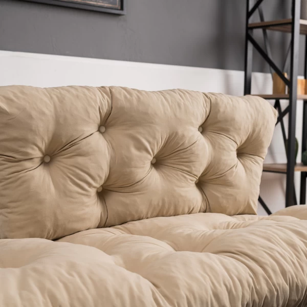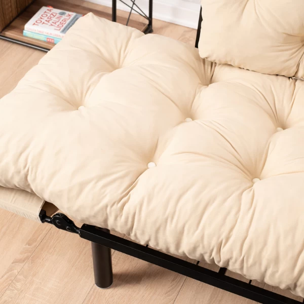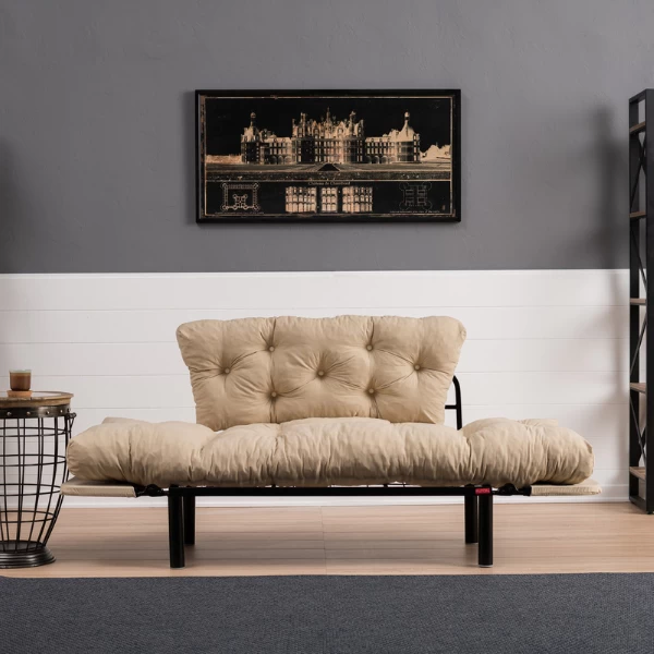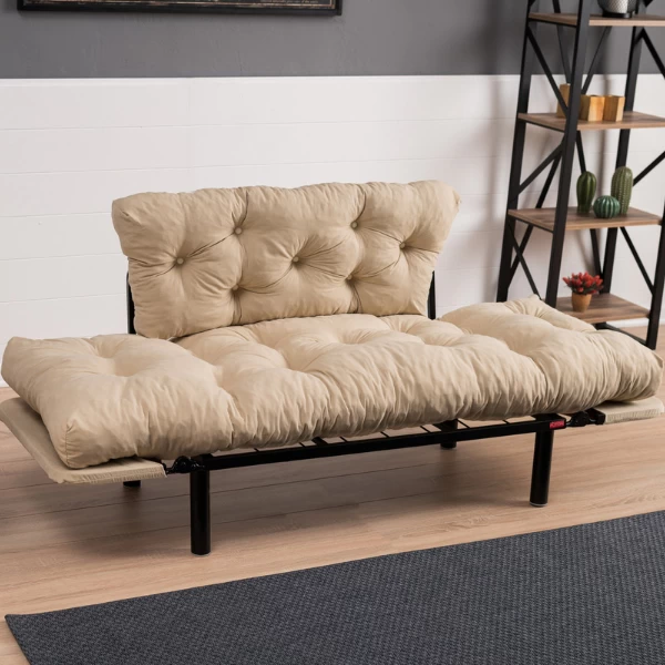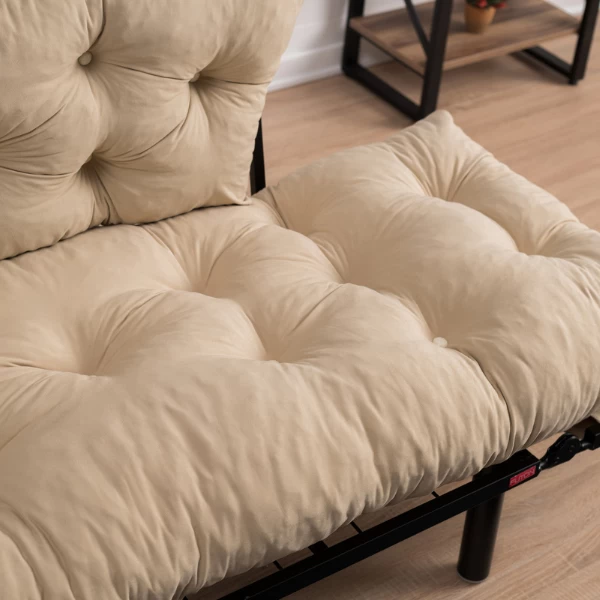 Voici le canapé-lit 2 places, un ajout stupéfiant à votre salon qui volera la vedette ! Avec son confort imbattable et son design unique, ce canapé-lit est la réponse à tous vos besoins en matière d’assise et de couchage. Que vous cherchiez à réaménager votre espace ou que vous souhaitiez simplement un meuble polyvalent, ce canapé-lit est la solution idéale pour vous.L’une des principales caractéristiques de ce canapé-lit est sa structure robuste, fabriquée à partir de métal à 100 %. Cela garantit la durabilité et la longévité, vous offrant un meuble fiable qui résistera à l’épreuve du temps. Le tissu du canapé-lit 2 places est un autre point fort : il est fabriqué à 100 % en microfibre. Ce matériau ajoute non seulement une touche d’élégance à votre salon, mais il garantit également le confort. Avec ses 155 cm de largeur, 85 cm de hauteur et 70 cm de profondeur, ce canapé-lit offre un équilibre parfait entre fonctionnalité et design peu encombrant. La profondeur d’assise de 53 cm et la largeur d’assise de 90 cm garantissent une expérience d’assise spacieuse et confortable, tandis que la hauteur d’assise de 45 cm permet un accès facile. Mais ce n’est pas tout – ce canapé-lit se transforme également en lit, vous offrant une solution de couchage pratique pour les personnes qui passent la nuit chez vous. La taille du lit, avec une largeur de 190 cm et une profondeur de 70 cm, offre suffisamment d’espace pour une nuit de sommeil confortable. Dites adieu aux matelas pneumatiques inconfortables ou aux futons gênants – ce canapé-lit garantit à vos invités une bonne nuit de repos.Le canapé-lit 2 places est rempli de mousse DNS de haute qualité, garantissant un confort et un soutien optimaux. Vous pouvez vous asseoir ou dormir dessus pendant des heures sans ressentir la moindre gêne. De plus, le tissu facile à nettoyer facilite l’entretien. Il suffit d’essuyer les liquides renversés ou les taches avec un chiffon humide, et votre canapé-lit sera comme neuf.Avec une capacité de poids maximale de 200 kg, ce canapé-lit peut accueillir des personnes de différentes tailles, ce qui le rend adapté à tous. Que vous ayez une petite famille ou un groupe d’amis se réunissant dans votre salon, ce canapé-lit vous couvre.Et avons-nous mentionné l’étonnante couleur crème ? La teinte neutre s’adapte sans effort à tous les styles d’intérieur et ajoute une touche d’originalité à l’ensemble.