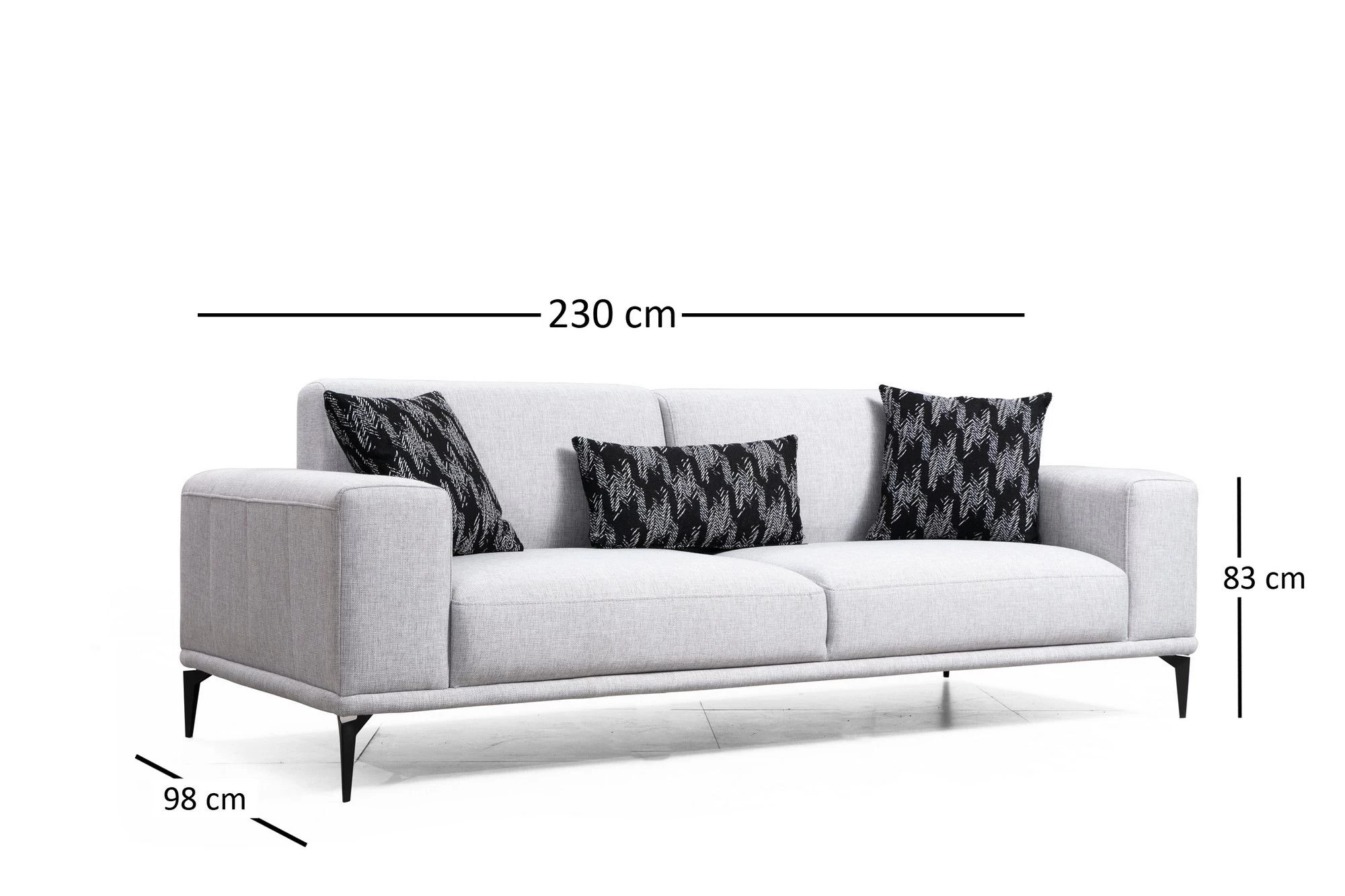 Voici le canapé-lit 3 places, le meuble ultime qui sera la star de votre salon ! Avec sa combinaison de confort et de design unique, ce canapé-lit est parfait pour ceux qui cherchent à rafraîchir leur espace avec une touche de fonction et de mode.Le canapé-lit 3 places est doté d’un cadre robuste en bois de hêtre et en panneaux de particules, garantissant durabilité et longévité. Le cadre offre stabilité et soutien, ce qui en fait une option fiable pour un usage quotidien. De plus, le tissu 100 % polyester ajoute une touche d’élégance au design général, tout en étant facile à nettoyer et à entretenir.Mesurant 230 cm de longueur, 98 cm de largeur et 83 cm de hauteur, ce canapé-lit offre suffisamment d’espace pour que vous et vos proches puissiez vous détendre et vous relaxer. La mousse utilisée dans la construction de ce canapé-lit est de qualité supérieure, avec une mousse grise souple mesurant 28 DNS, garantissant une expérience d’assise moelleuse et confortable. La plume de 24 DNS ajoute une couche supplémentaire de luxe et de confort, ce qui le rend parfait pour se prélasser ou faire la sieste.Le système de canapé comporte un mécanisme de dossier réglable, vous permettant de personnaliser la position d’assise en fonction de vos préférences. Que vous souhaitiez vous asseoir en position verticale ou inclinée, ce canapé-lit répond à vos besoins de confort. Pour améliorer votre confort, trois oreillers sont inclus dans le prix d’achat. Ces oreillers sont remplis d’une combinaison de 60 % de mousse découpée et de 40 % de mousse de silicone, offrant un soutien optimal à votre dos et à votre cou. Les dimensions des oreillers sont de 40 cm x 40 cm pour deux oreillers et de 65 cm x 30 cm pour un oreiller.L’une des caractéristiques les plus remarquables de ce canapé-lit est son tissu nettoyable à sec, qui garantit un nettoyage et un entretien sans effort. Les éclaboussures et les taches ne sont plus un souci, car vous pouvez les enlever facilement grâce à un simple processus de nettoyage à sec. Le canapé-lit 3 places est soutenu par des pieds élégants en métal noir mat, qui ajoutent une touche de modernité à son esthétique générale. Avec une hauteur de mousse de 25 cm, ce canapé-lit est parfait pour ceux qui préfèrent une position assise plus élevée, offrant un soutien et un confort supplémentaires.En conclusion, le canapé-lit 3 places est l’ajout parfait à votre salon. En conclusion, le canapé-lit 3 places est le complément idéal de votre salon.