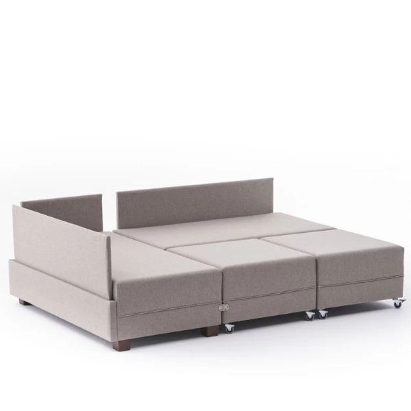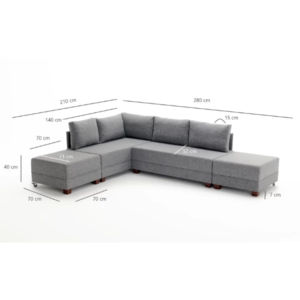 Améliorez votre salon avec notre superbe canapé-lit d’angle. Ce meuble exceptionnel allie confort, design unique et fonctionnalité, ce qui en fait le complément idéal de votre intérieur. Que vous souhaitiez améliorer l’esthétique de votre espace ou ajouter des options de couchage supplémentaires, notre canapé-lit d’angle est le choix idéal.L’une des principales caractéristiques de notre canapé-lit d’angle est sa construction robuste. Le cadre est fabriqué en bois de haute qualité et en panneaux de particules recouverts de mélamine, ce qui garantit sa durabilité et sa longévité. Le canapé peut ainsi résister à un usage quotidien sans perdre son intégrité structurelle. Vous pouvez être sûr que notre canapé-lit sera un investissement fiable et durable pour votre maison. De plus, le revêtement de notre canapé-lit d’angle est fabriqué à partir d’une combinaison de 100 otton et de tissu polyester. Ce mélange garantit à la fois le confort et la durabilité, ce qui vous permettra de profiter de la sensation luxueuse du canapé pendant des années. Le tissu est également facile à nettoyer, ce qui facilite l’entretien. La zone d’assise de notre canapé d’angle est conçue pour un maximum de confort. La zone d’assise de notre canapé d’angle est conçue pour un confort maximal. Elle est dotée d’une mousse de 32 DNS, qui offre un excellent soutien et un bon amortissement. Que vous soyez assis ou allongé, vous ferez l’expérience d’une relaxation et d’un confort ultimes. La mousse a une épaisseur de 12 cm, ce qui lui permet de conserver sa forme même en cas d’utilisation régulière.Outre son confort, notre canapé-lit d’angle est doté de pieds en bois massif, qui ajoutent une touche d’élégance et de sophistication à votre salon. Les dimensions de notre canapé-lit d’angle sont conçues pour optimiser l’espace dans votre salon. Avec une largeur de 210 cm, une hauteur de 70 cm et une profondeur de 280 cm, il s’intègre parfaitement dans les coins, tirant le meilleur parti de chaque centimètre. La taille du lit est de 140 x 190 cm, ce qui offre un grand espace de couchage pour les invités ou les membres de la famille. La hauteur de l’assise est de 40 cm, ce qui permet de s’asseoir et de se lever facilement, tandis que la profondeur de l’assise est de 52 cm, ce qui garantit un confort optimal. La longueur de l’assise est de 210 cm, ce qui permet à plusieurs personnes de s’asseoir confortablement. La hauteur du dossier est de 40 cm, ce qui offre un excellent soutien à votre dos. Les pieds ont une hauteur de 7 cm, ajoutant un léger relief au canapé.Pour rehausser l’attrait esthétique de votre salon, notre canapé-lit d’angle est disponible dans une élégante couleur crème. Cette teinte neutre complète tout décor existant et permet une coordination facile avec d’autres pièces de mobilier.En résumé, notre canapé-lit d’angle est une combinaison parfaite de style, de fonctionnalité et de confort.