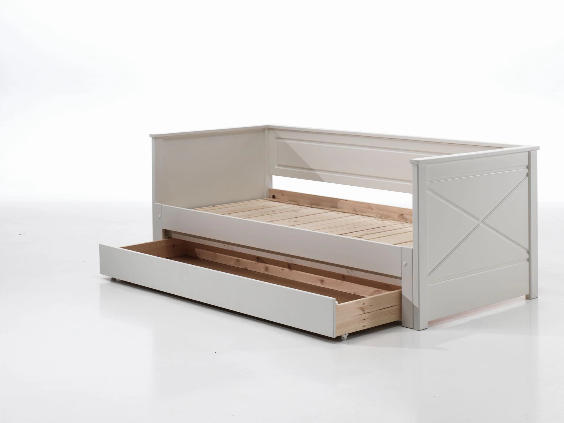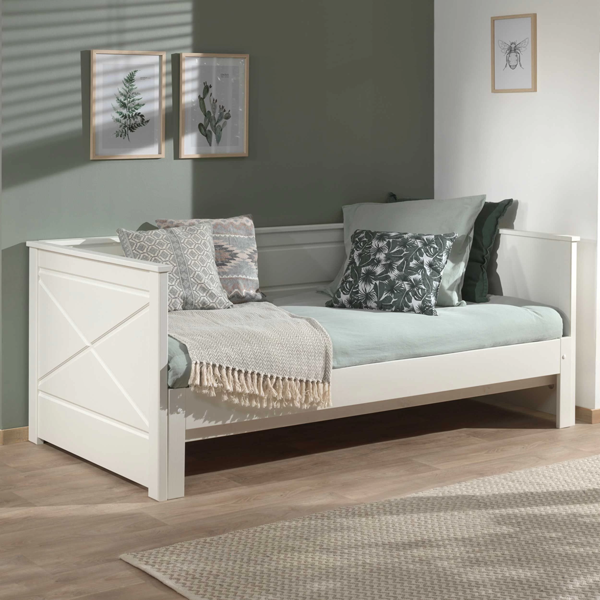 Ce canapé-lit Pepin est aussi polyvalent qu’élégant. Le lit est fabriqué en bois de pin massif et est équipé d’un sommier à lattes extensible. De cette façon, le lit peut être transformé de 90 x 200cm à 180 x 200cm. Grâce à ses bords hauts, le lit peut également être utilisé comme un canapé. Parfait si vos enfants veulent toujours lire dans leur chambre, ou s’ils veulent simplement avoir leur propre endroit pour se détendre. Grâce à son design élégant aux couleurs neutres, ce lit est également idéal comme lit d’appoint pour vos invités adultes.