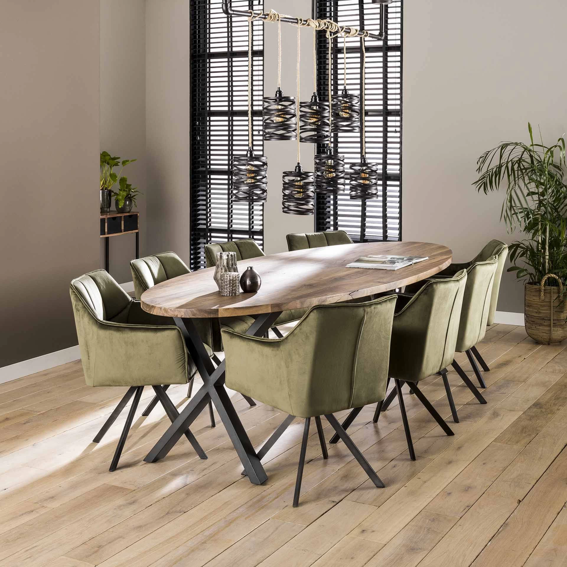 Les chaises de la collection Richi sont très tendance grâce à leur revêtement en velours. Ils sont disponibles en deux couleurs différentes : rose et vert olive. Cette chaise est dotée d’une assise confortable en polyuréthane et peut tourner autour de son axe.
