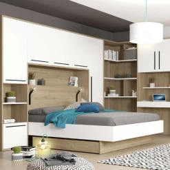 Lit Double Moloko 140x190cm – Blanc Brillant Et Aspect Chêne