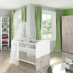 Lit Bébé Binno 70×140 Avec 2 Pans De Lit – Pin Blanchi/blanc