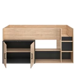 Lit Mi-hauteur Zjef Avec Rangement Et Tablette – Chêne Blond/noir