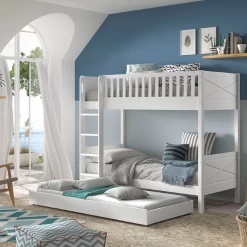 Lits Superposés Avec Tiroir Maiko 90×200 – Chêne Clair/blanc