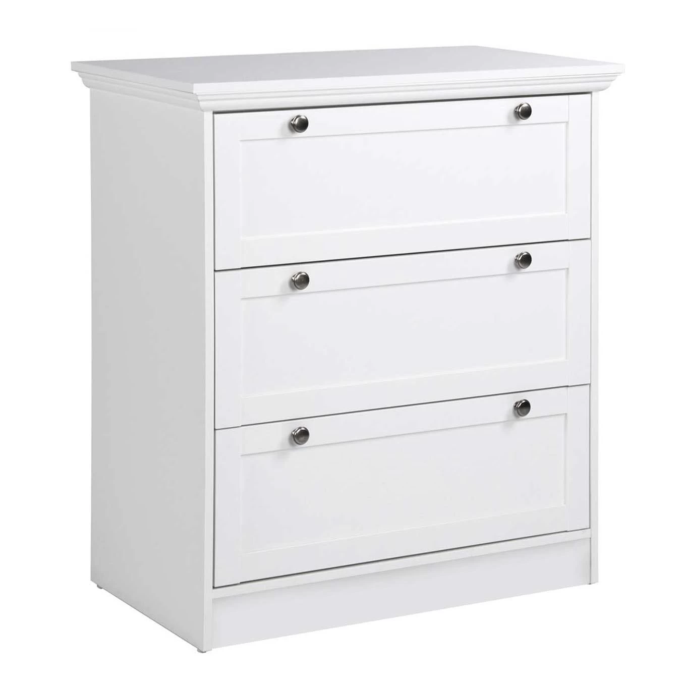 Ce chiffonnier compte 3 larges tiroirs où vous pouvez ranger des tas d’affaires. Installez-le dans l’entrée, le couloir, le séjour ou la chambre, bref, où vous avez besoin d’un rangement supplémentaire !
