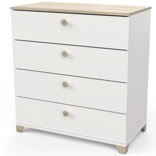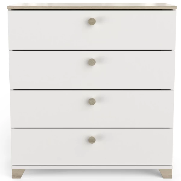 Les accents de nature clairs en décor chêne Kronberg et le blanc mat font que ce chiffonnier s’intégrera parfaitement dans un style d’intérieur scandinave. Dans les 4 tiroirs il y a de l’espace pour des chausettes, des sous-vêtements et de la literie. Combinez avec le lit simple Liva, la table de chevet Liva et l’armoire Liva et vous avez une chambre d’enfant scandinave pleine d’ambiance. Vis et chevilles pour montage mural non-inclus.