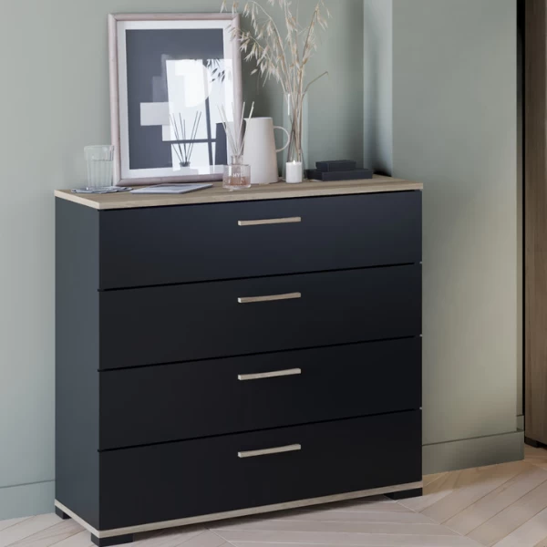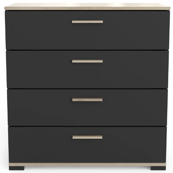 Les accents de bois clairs en décor chêne Kronberg et le noir mat dur font que ce chiffonnier s’intégrera parfaitement dans un style d’intérieur industriel. Dans les 4 tiroirs il y a de l’espace pour des chausettes, des sous-vêtements et de la literie. Combinez avec le lit double noir Liva, la table de chevet noire Liva et l’armoire noire Liva et vous avez une chambre à coucher industrielle élégante! Vis et chevilles pour montage mural non-inclus.