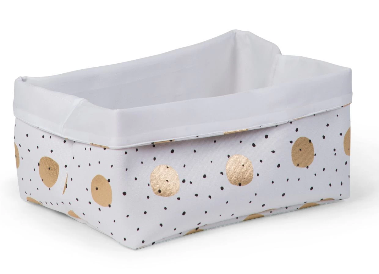 Ce panier magnifique est décoré de pois dorés et noirs. A la fois pratique et décoratif, vous pouvez vous servir de ce panier pour ranger des chaussettes, des jouets, des vêtements ou des accessoires de toilette.