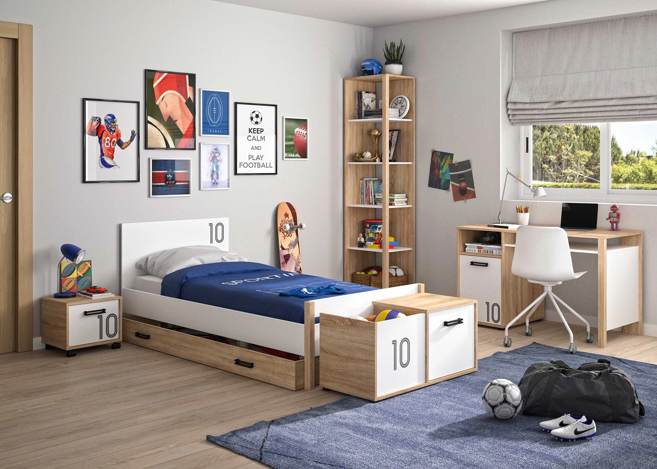 Votre enfant adore le football ? Surprenez-le avec une vraie chambre de footballeur ! La chambre enfant Nathan se compose de meubles au décor chêne sonoma qui sont décorés dans le thème de foot.