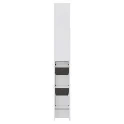 Ce meuble de bureau blanc brillant trouvera sa place dans n’importe quel coin compact de la chambre ou du dressing. La table de maquillage est équipée d’un grand miroir, de deux tiroirs avec poignées en cuir et de quatre grands compartiments ouverts. Cela vous permet de ranger facilement tous vos sacs à main, brosses et bijoux. Cette table est fabriquée en aggloméré et a reçu une finition en mélamine.