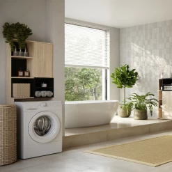 Meuble Pour Machine à Laver Kuba 4 étagères, 1 Porte Tournante-chêne Clair/noir
