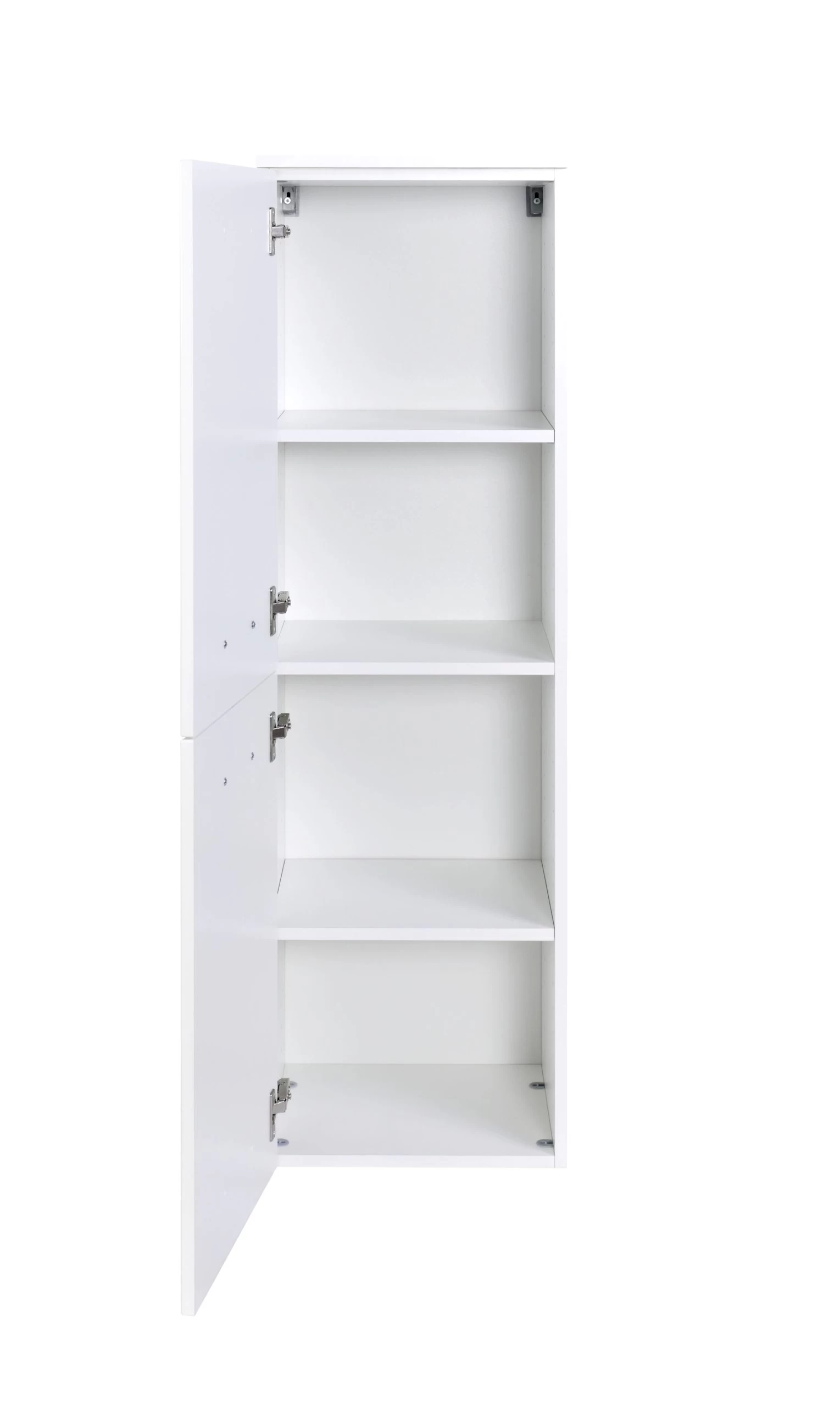 Profitez tous les jours d’une atmosphère agréable dans la salle de bains grâce aux meubles élégants de la collection Florent. Cette colonne a 40 cm de large et est équipée de 2 portes et de 3 étagères. Le meuble est réalisé en panneaux de particules et MDF avec une finition en blanc brillant. Combinez la colonne avec les autres meubles de la collection Florent et composez votre salle de bains idéale.