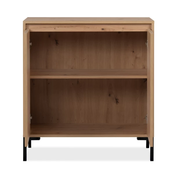 Le décor chêne d’artisan chaleureux de ce commode crée de l’ambiance dans votre salle de séjour. Derrière les 2 portes tournantes il y a de la place pour éventuellement des jeux de société, livres, etc. Personalisez votre commode en y mettant une belle plante d’intérieur ou d’autres décorations.
