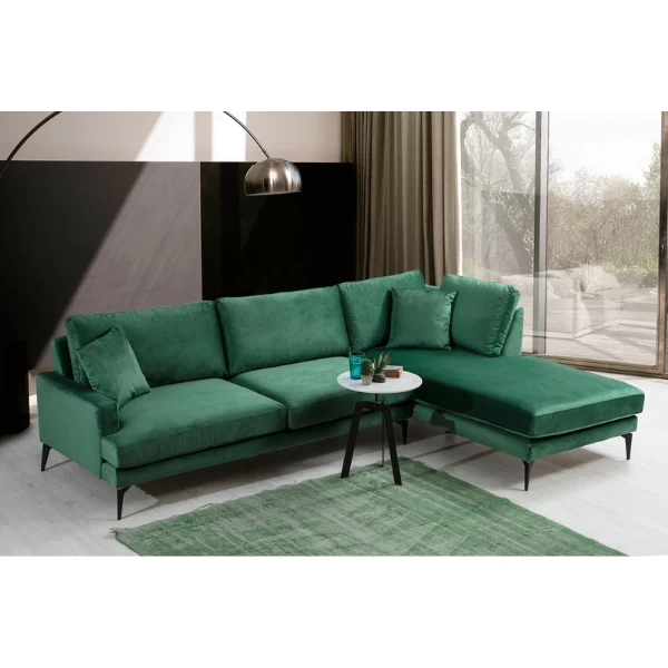 Voici le canapé d’angle, un ajout élégant et confortable à votre salon qui deviendra sans aucun doute la star du spectacle ! Ce canapé d’angle offre non seulement un confort suprême, mais aussi un design unique qui rehaussera l’esthétique de n’importe quel espace. Si vous cherchez à rafraîchir votre salon et à créer une atmosphère élégante et accueillante, le canapé d’angle est la solution parfaite pour vous avec sa combinaison gagnante de fonction et de mode.L’une des principales caractéristiques de ce canapé d’angle est sa construction de haute qualité. L’une des principales caractéristiques de ce canapé d’angle est sa construction de haute qualité. Le cadre est fabriqué en bois de hêtre durable et en panneaux de particules, ce qui garantit sa longévité et sa robustesse. Le tissu utilisé pour ce canapé d’angle est 100 % polyester, ce qui est non seulement luxueux au toucher mais offre également une excellente durabilité. Cela signifie que votre canapé conservera son aspect impeccable même après une utilisation prolongée. Mesurant 283 x 180 cm de long, 90 cm de large et 88 cm de haut, ce canapé d’angle offre un grand espace d’assise pour vous et vos proches. Que vous vous détendiez avec un livre, que vous organisiez une soirée cinéma ou que vous receviez des invités, ce canapé offre beaucoup d’espace pour accueillir confortablement tout le monde.La mousse utilisée dans la zone d’assise est une mousse grise douce de 28 DNS, qui offre une sensation de peluche et de soutien. Vous pouvez ainsi vous enfoncer dans le canapé et vous détendre après une longue journée, tout en conservant le soutien nécessaire à une bonne posture. Les coussins de dossier de ce canapé d’angle sont constitués d’une combinaison de 60 % de mousse coupée et de 40 % de mousse de silicone. Ce mélange unique crée un équilibre parfait entre douceur et soutien, vous permettant de vous adosser et de vous détendre dans un confort ultime.Une autre grande caractéristique de ce canapé d’angle est son assise et ses coussins de dossier portables. Cela signifie que vous avez la possibilité de réarranger les coussins en fonction de la position d’assise souhaitée, ce qui permet de personnaliser le confort. Que vous préfériez une position plus droite ou une expérience de détente plus décontractée, ce canapé peut répondre à vos préférences.Avec son élégante couleur verte, le canapé d’angle ajoute une touche de sophistication à n’importe quel décor de salon. La belle nuance de vert s’harmonise avec un large éventail de palettes de couleurs et ajoute une touche de couleur rafraîchissante à votre espace.