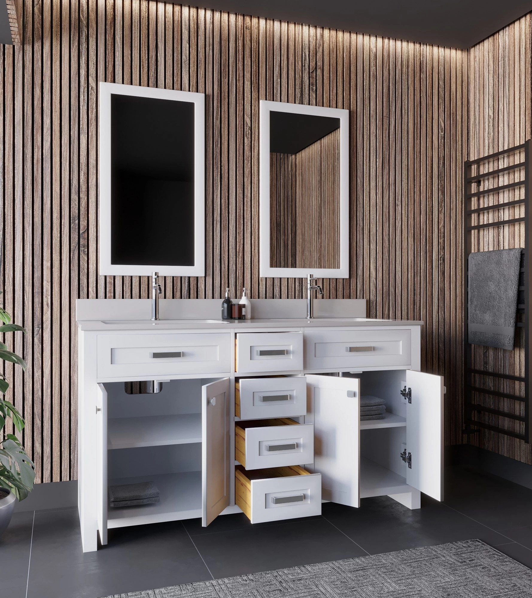Soyez le premier à laisser votre avis sur “Ensemble De Meubles De Salle De Bains Jussara – Comptoir En Quartz Blanc – Miroir Flotal” Annuler la réponse