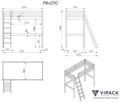 Lit Mezzanine Claire Avec Lit Simple Anne 90 X 200cm – Blanc