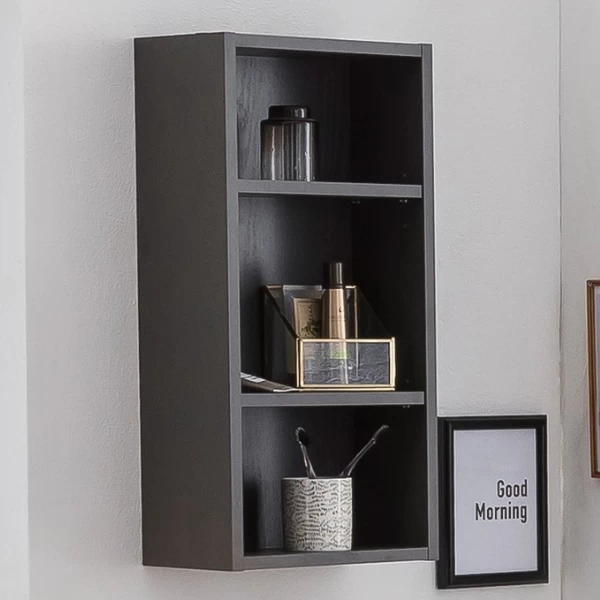 Vous êtes toujours à la recherche de meubles élégants pour aménager votre salle de bains ? La collection Karan allie fonctionnalité et design remarquable. Cette étagère murale est fabriquée à partir d’aggloméré et d’une finition en mélamine de couleur anthracite. Il est facile à fixer au mur. Grâce aux deux étagères, vous pouvez créer un espace de rangement supplémentaire pour vos ustensiles de salle de bains, à portée de main. Découvrez la collection complète de Karan sur notre site.