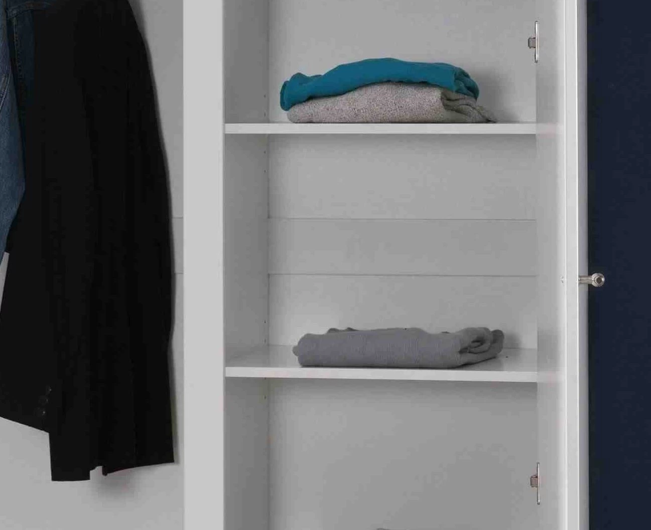 Avez-vous acheté l’armoire Lara et avez-vous besoin d’un espace de rangement supplémentaire ? Vous pouvez alors commander deux étagères supplémentaires séparément. Ces étagères de 54 cm de large et 51 cm de profondeur s’adaptent parfaitement à l’armoire Lara à 3 portes.