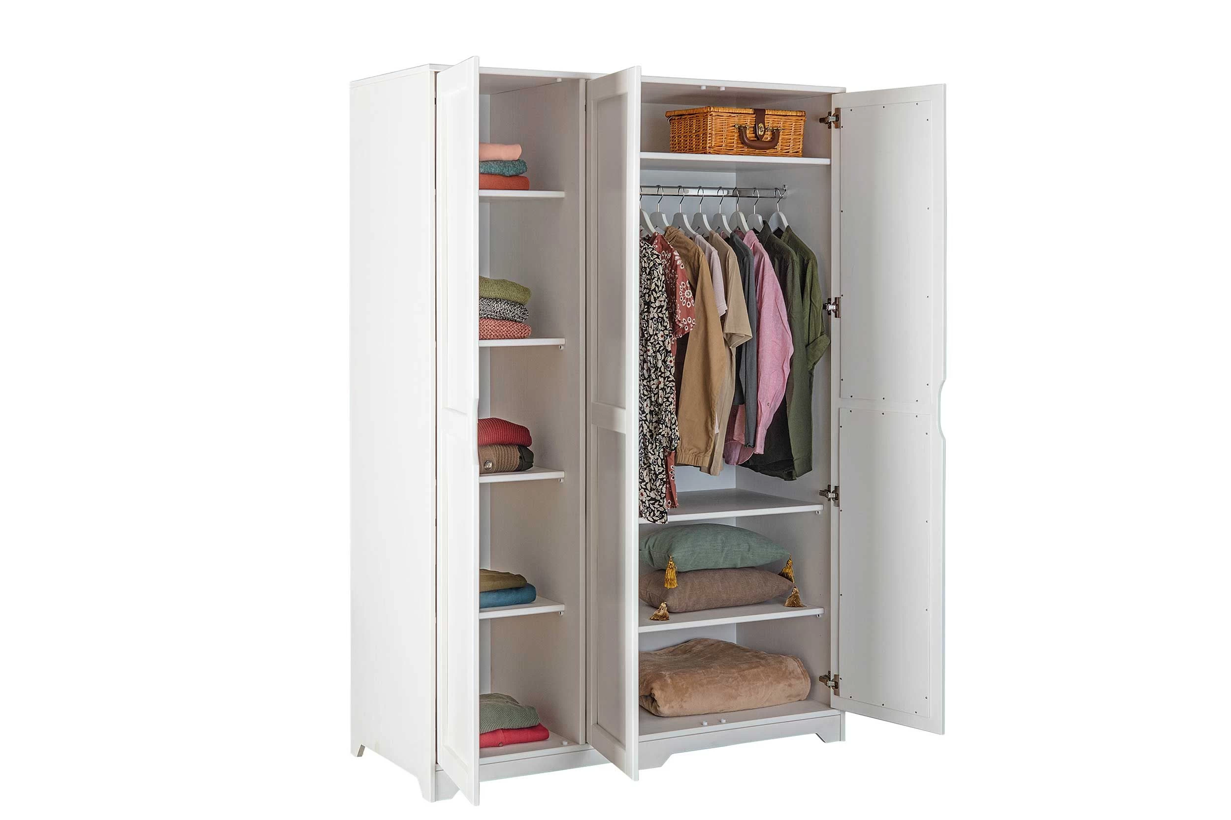 L’armoire Xavier mesure 138 cm de long et comporte trois portes. Cette armoire est spacieuse et comporte sept étagères et une tringle à vêtements. Combinez cette armoire avec les autres meubles de la collection Xavier pour une chambre à coucher complète.