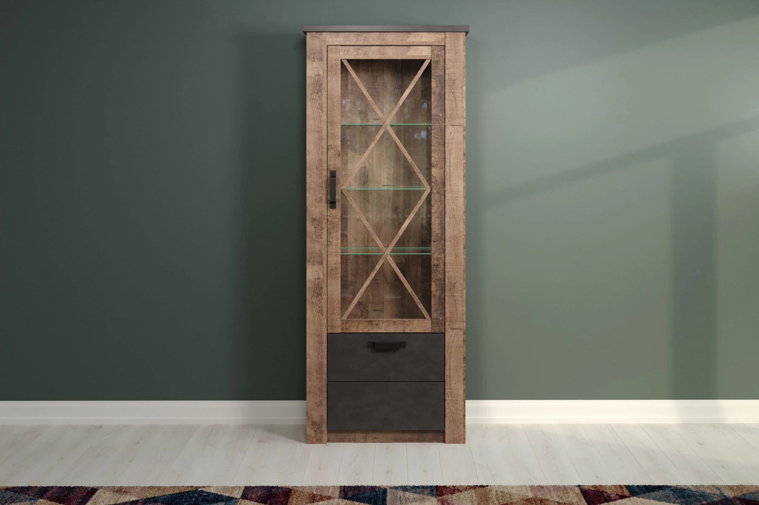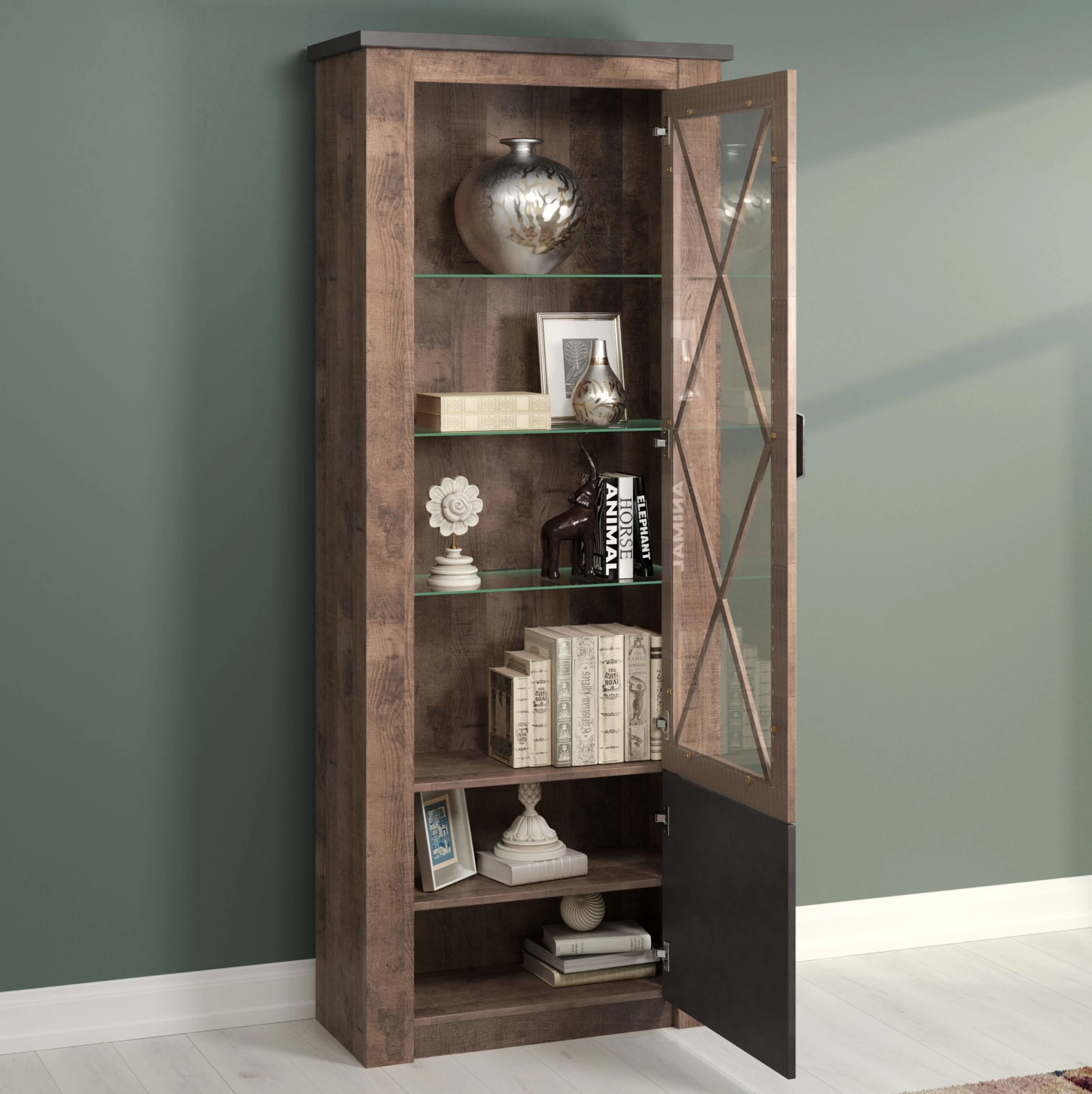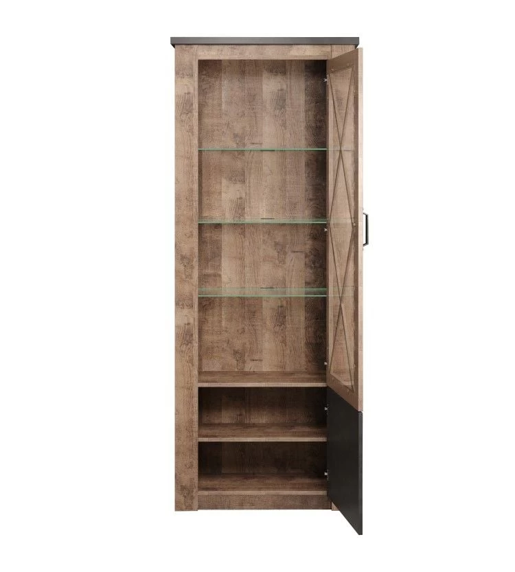 L’assemblage de cette vitrine sur pied est un jeu d’enfant, puisqu’il ne prend que 90 minutes environ. Les dimensions de 205 x 38 x 82 cm offrent un grand espace de rangement. L’armoire est fabriquée à partir de matériaux à base de bois certifiés FSC, ce qui garantit sa durabilité.