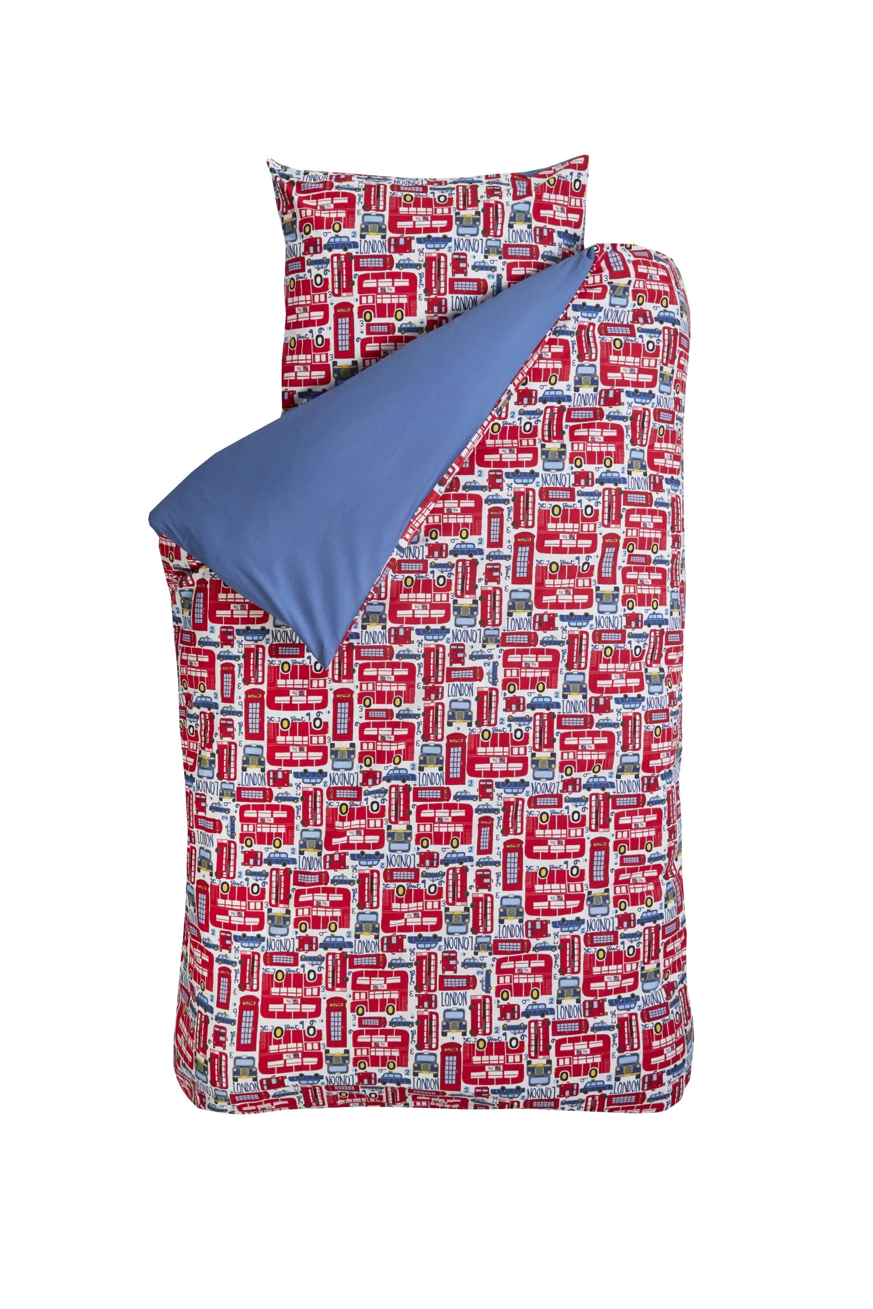 Housse de couette City Bus, en 100% coton. Le traitement Easycare garantit un entretien et un repassage facilités. Cette housse de couette mesure 140 x 220 cm et est pourvue d’un rabat au pied. La taie mesure 60 x 70 cm. Découvrez également la suspension correspondante.
