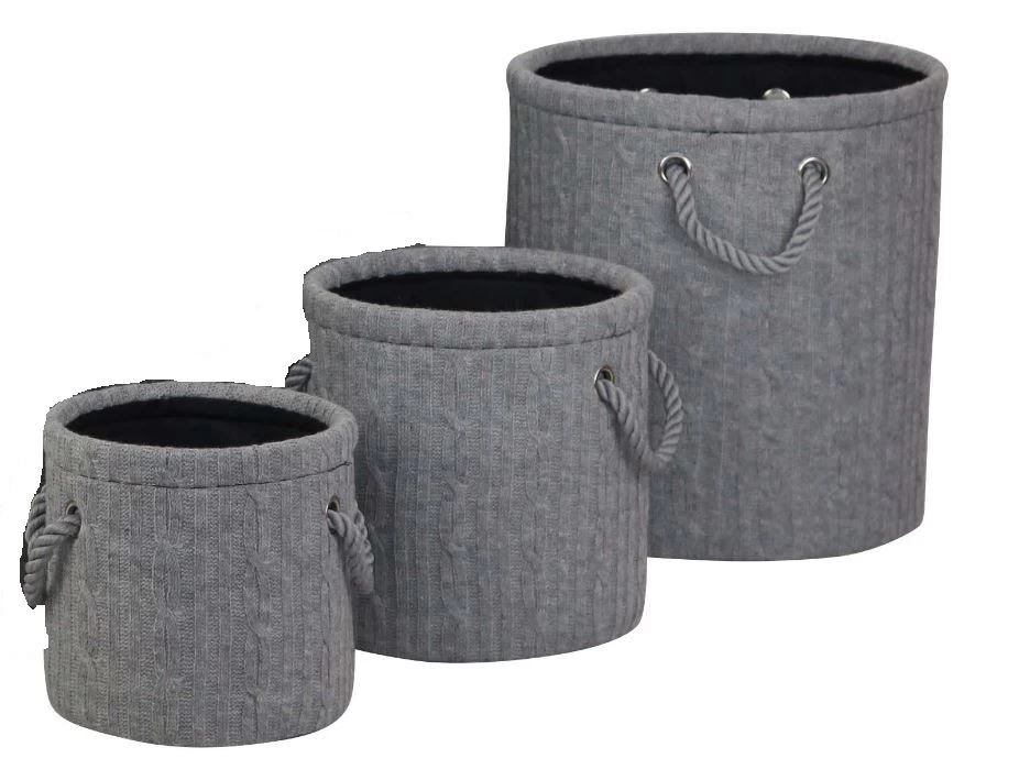 Cet ensemble se compose de 3 paniers de rangement tricotés de couleur grise. Les paniers sont équipés de poignées et sont parfaits pour ranger des jouets, par exemple. Ils ont tous d’autres dimensions. Ils sont réalisés en polyester et nylon.
