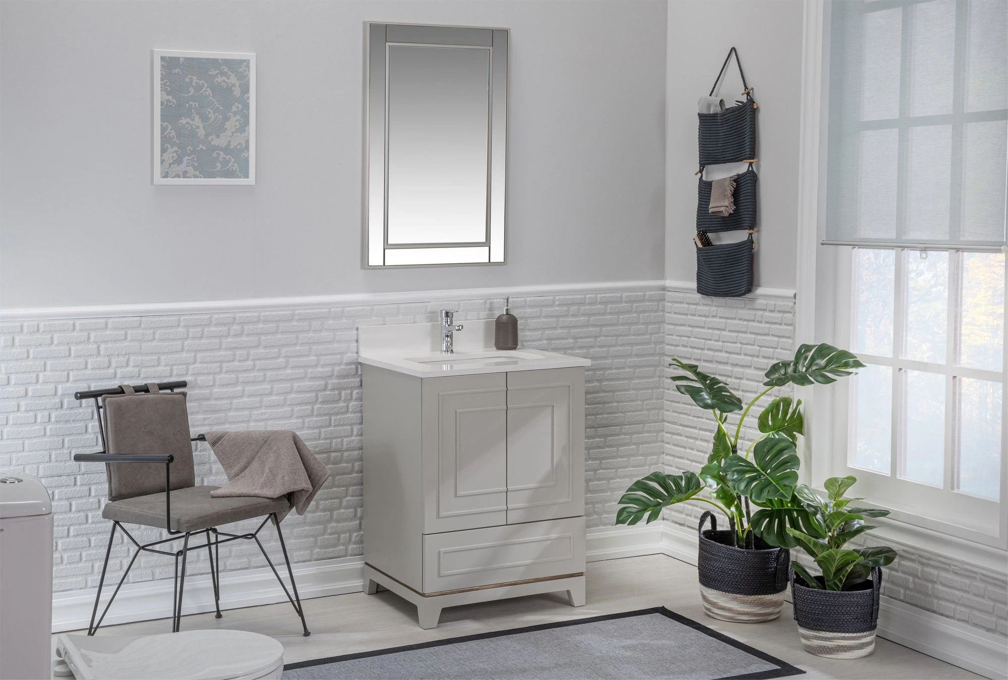 L’ensemble de meubles de salle de bains Jussara est un complément élégant et fonctionnel à toute salle de bains. Composé de 2 pièces, cet ensemble est conçu pour apporter élégance et durabilité à votre espace. Fabriqué à partir de matériaux de qualité supérieure, notamment du MDF (bois massif) 100% laqué d’une épaisseur de 18 mm, cet ensemble de meubles de salle de bain est conçu pour résister à un usage quotidien et durer des années.L’une des caractéristiques remarquables de l’ensemble de meubles de salle de bain Jussara est son comptoir, fabriqué à partir de quartz 100% blanc. Non seulement il ajoute une touche de sophistication à l’ensemble, mais il offre également une durabilité exceptionnelle et une résistance aux taches et aux rayures. Le tiroir de l’ensemble de meubles de salle de bains Jussara est fabriqué en bois 100% marin, connu pour sa résistance à l’humidité. D’une épaisseur de 12 mm, ce tiroir permet de ranger en toute sécurité et d’accéder facilement aux éléments essentiels de la salle de bains. Dites adieu aux plans de travail encombrés et bonjour à un espace de salle de bains bien rangé et organisé.L’ensemble comprend un miroir flotté, conçu pour compléter l’esthétique générale de l’ensemble de meubles de salle de bains Jussara. Avec son design élégant et moderne, ce miroir ajoute de la profondeur et de la lumière à votre salle de bain, créant une atmosphère plus spacieuse et accueillante. Le miroir mesure 55 cm de largeur et 80 cm de hauteur, offrant un large espace de réflexion pour vos soins quotidiens.Le meuble-lavabo Jussara, avec ses dimensions de 60 cm de largeur, 22 cm de hauteur et 56 cm de profondeur, offre un large espace de rangement sans compromettre le style. Ce meuble compact mais fonctionnel est parfait pour les petites salles de bains ou pour ceux qui préfèrent un look minimaliste. L’élégante couleur grise ajoute une touche de sophistication, se fondant sans effort dans tout décor de salle de bains.Outre son attrait esthétique, l’ensemble de meubles de salle de bains Jussara offre de nombreux avantages. Les matériaux de haute qualité utilisés dans sa construction garantissent une durabilité à long terme, ce qui en fait un investissement judicieux pour votre salle de bains. Les surfaces faciles à nettoyer et la construction résistante permettent un entretien sans effort, ce qui vous permet d’économiser du temps et des efforts dans votre routine de nettoyage quotidienne.Avec son design intelligent et sa construction réfléchie, l’ensemble de meubles de salle de bains Jussara apporte fonctionnalité et style à votre salle de bains. Que vous rénoviez votre espace existant ou que vous conceviez une nouvelle salle de bains, cet ensemble de meubles ne manquera pas d’impressionner. Le mobilier de salle de bains Jussara vous permet de rénover votre salle de bains et de profiter d’une salle de bains étonnante et fonctionnelle.