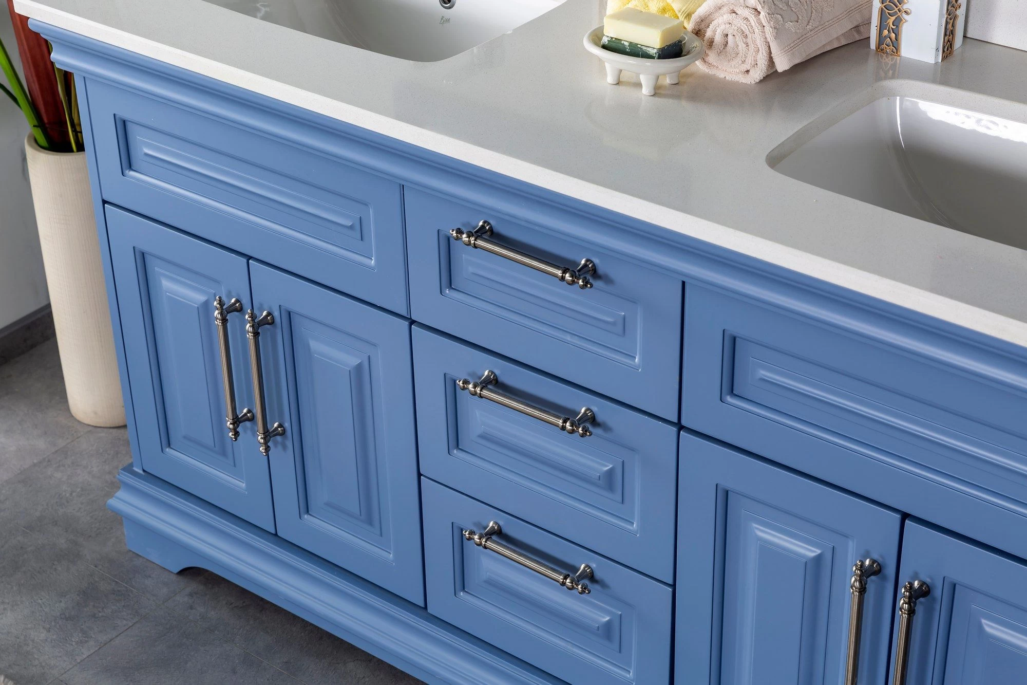 L’ensemble de meubles de salle de bains Jussara est un ajout remarquable à tout espace de salle de bains. Cet ensemble de 3 pièces est soigneusement fabriqué avec 100% de MDF laqué (bois massif) d’une épaisseur de 18mm, garantissant durabilité et longévité. L’ensemble Jussara est doté d’un plan de travail en quartz blanc à 100 %, qui confère une touche élégante et moderne à votre salle de bains. L’évier en porcelaine sous plan ajoute une touche d’élégance et de fonctionnalité, facilitant la propreté et l’organisation de votre salle de bain.L’une des caractéristiques remarquables de l’ensemble Jussara est le tiroir, qui est fabriqué à partir de bois 100% marin d’une épaisseur de 12 mm. Cela garantit que le tiroir reste robuste et fiable, même en cas d’utilisation régulière. L’ensemble comprend également un miroir flotté, qui ajoute une touche de sophistication et de style à votre salle de bains. Grâce à son design épuré et à sa construction de haute qualité, ce miroir ne se contentera pas de remplir sa fonction, il rehaussera également l’esthétique générale de votre salle de bains. Pour compléter le design général de l’ensemble Jussara, des poignées en bronze sont incluses. Ces poignées ajoutent une touche d’élégance et de classe, ce qui permet à l’ensemble de se démarquer. Avec une largeur de 150 cm, une hauteur de 22 cm et une profondeur de 56 cm, le meuble-lavabo Jussara offre suffisamment d’espace pour ranger les éléments essentiels de votre salle de bains. Qu’il s’agisse de serviettes, d’articles de toilette ou d’autres objets personnels, ce meuble permet de tout ranger et d’y accéder facilement. Le miroir qui l’accompagne, d’une largeur de 55 cm et d’une hauteur de 88 cm, complète l’ensemble avec une touche de couleur, notamment dans une magnifique nuance de bleu. En résumé, l’ensemble de meubles de salle de bains Jussara offre une combinaison de style, de fonctionnalité et de durabilité. L’utilisation de MDF 100% laqué et de bois marin garantit que cet ensemble résistera à l’épreuve du temps, ce qui en fait un investissement durable pour votre salle de bains. Le comptoir en quartz blanc, l’évier en porcelaine sous plan et les poignées en bronze ajoutent une touche de luxe et de sophistication. Grâce à son tiroir spacieux et à son vaste espace de rangement, l’ensemble Jussara contribue à désencombrer votre salle de bains. Le miroir flotté et le miroir bleu apportent une touche élégante et personnalisée à la décoration de votre salle de bains. Améliorez votre salle de bains avec l’ensemble de meubles de salle de bains Jussara dès aujourd’hui, et profitez des avantages suivants
