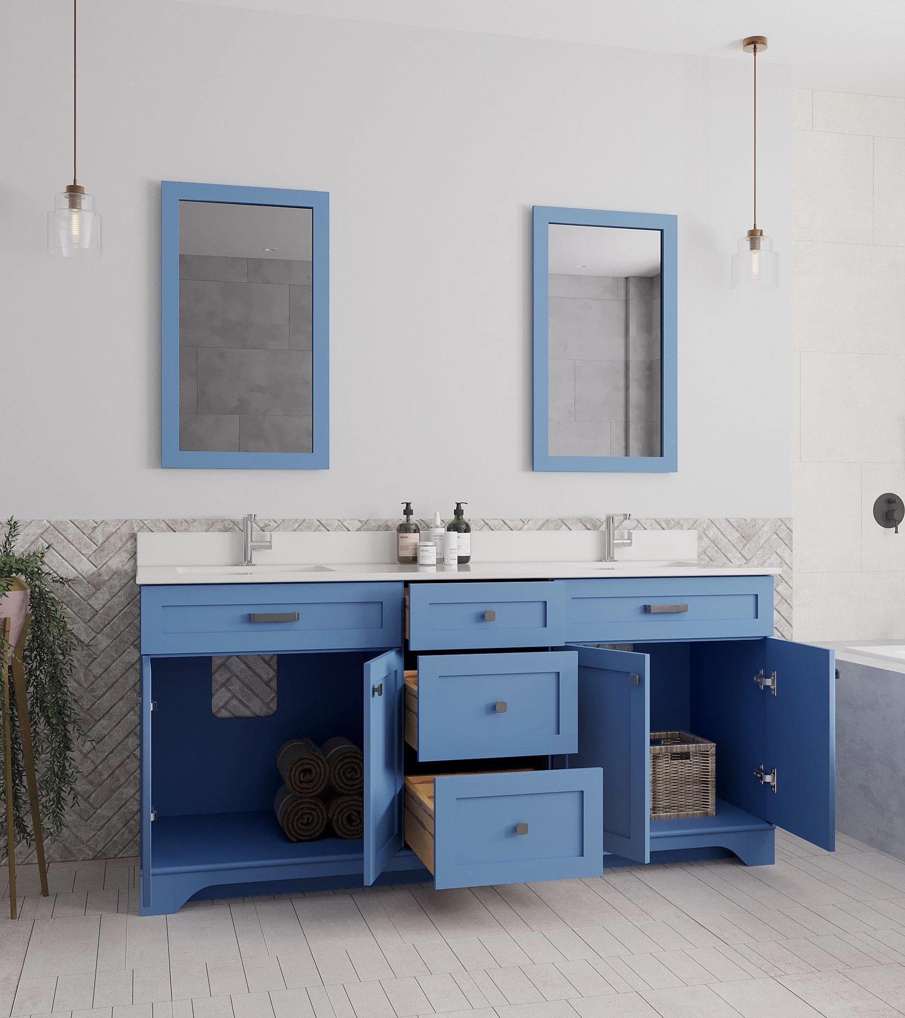 Soyez le premier à laisser votre avis sur “Jussara” Ensemble De Meubles De Salle De Bains | Bleu | Comptoir En Quartz | Tiroir En Bois Marin” Annuler la réponse