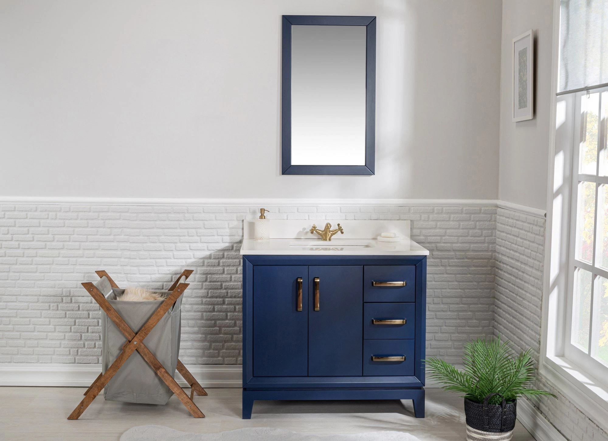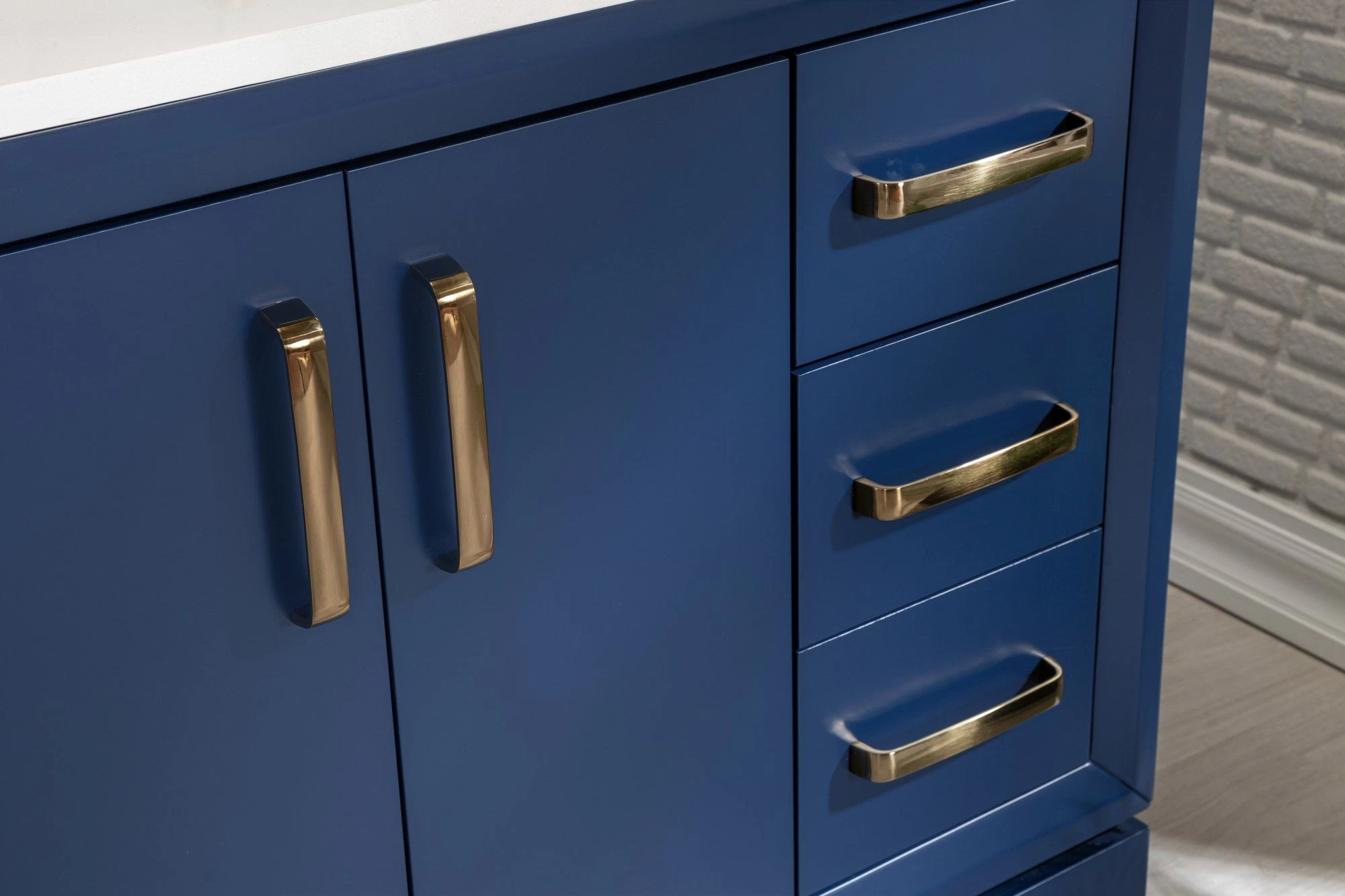 L’ensemble de meubles de salle de bain Jussara est un ensemble de deux pièces conçu pour rehausser l’esthétique et la fonctionnalité de votre salle de bain. Fabriqué avec la plus grande précision et le souci du détail, cet ensemble de meubles est fabriqué à partir de MDF (bois massif) 100 % laqué d’une épaisseur de 18 mm, ce qui garantit sa durabilité et sa longévité.L’une des caractéristiques remarquables de cet ensemble est le comptoir, qui est fabriqué à partir de quartz blanc à 100 %. Réputé pour son élégance et sa résistance, le quartz blanc ajoute une touche de luxe à tout espace. Le tiroir de l’ensemble de meubles de salle de bain Jussara est fabriqué à partir de bois marin à 100 %, connu pour sa résistance à l’humidité. Avec une épaisseur de 12 mm, le tiroir offre un grand espace de rangement pour tous les éléments essentiels de la salle de bain, les gardant organisés et facilement accessibles. La construction en bois marin garantit la solidité et la fiabilité du tiroir pour les années à venir.Un élément essentiel de cet ensemble est le miroir flottant, qui n’a pas seulement une fonction pratique, mais qui rehausse également l’attrait visuel de votre salle de bains. Le miroir a une largeur de 55 cm et une hauteur de 80 cm, offrant une surface de réflexion généreuse. Sa couleur bleu foncé complète le design général de l’ensemble de meubles, créant un look harmonieux et sophistiqué.Pour améliorer encore l’attrait esthétique et la fonctionnalité, l’ensemble de meubles de salle de bains Jussara est doté de poignées en bronze. Ces poignées ajoutent une touche subtile de glamour et d’élégance au meuble, ce qui en fait une pièce maîtresse dans votre salle de bains. La combinaison du miroir bleu foncé et des poignées en bronze crée un look cohérent et contemporain.Les dimensions du meuble de salle de bain de cet ensemble sont les suivantes : largeur : 90cm, hauteur : 22cm, et profondeur : 56cm. Cette taille idéale garantit que le meuble s’adapte bien à la plupart des salles de bains, offrant un grand espace de rangement tout en conservant un design élégant et compact.En plus de son design élégant et moderne, l’ensemble de meubles de salle de bains Jussara offre de nombreux avantages. L’utilisation de matériaux de haute qualité, tels que le MDF laqué et le bois marin, garantit la durabilité et la longévité. Le plan de travail en quartz 100 % blanc et l’évier en porcelaine sous plan sont résistants aux taches et faciles à nettoyer, ce qui garantit un entretien sans souci. Le grand espace de rangement fourni par le tiroir vous permet de garder vos articles de salle de bain organisés et facilement accessibles. De plus, le miroir flotté ajoute de la profondeur et de la luminosité à votre salle de bains, mettant ainsi en valeur l’image de marque de la salle de bains.