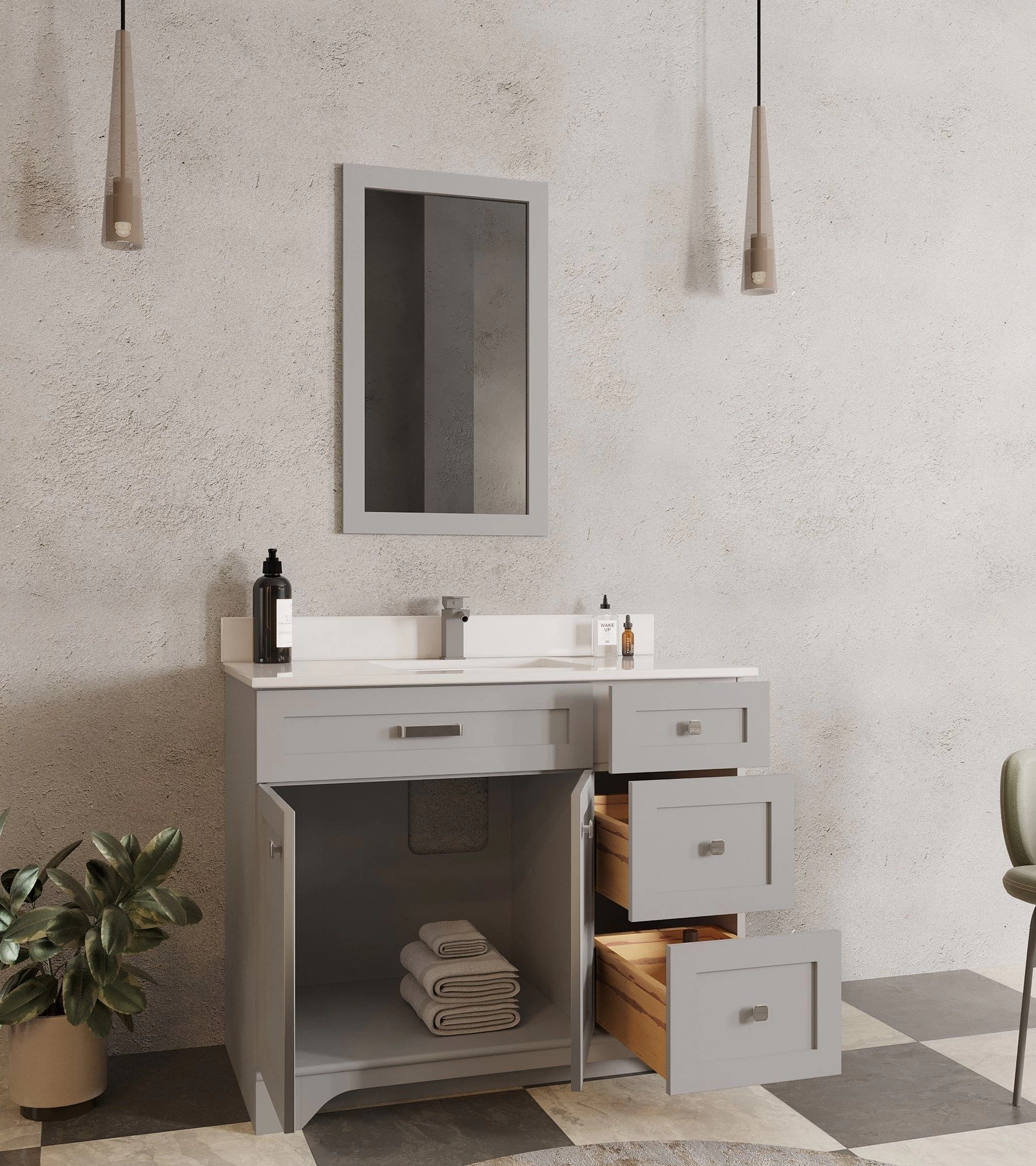 Soyez le premier à laisser votre avis sur “Jussara Ensemble De Salle De Bain : 2 Pièces | Bois Massif | Comptoir En Quartz | Gris” Annuler la réponse