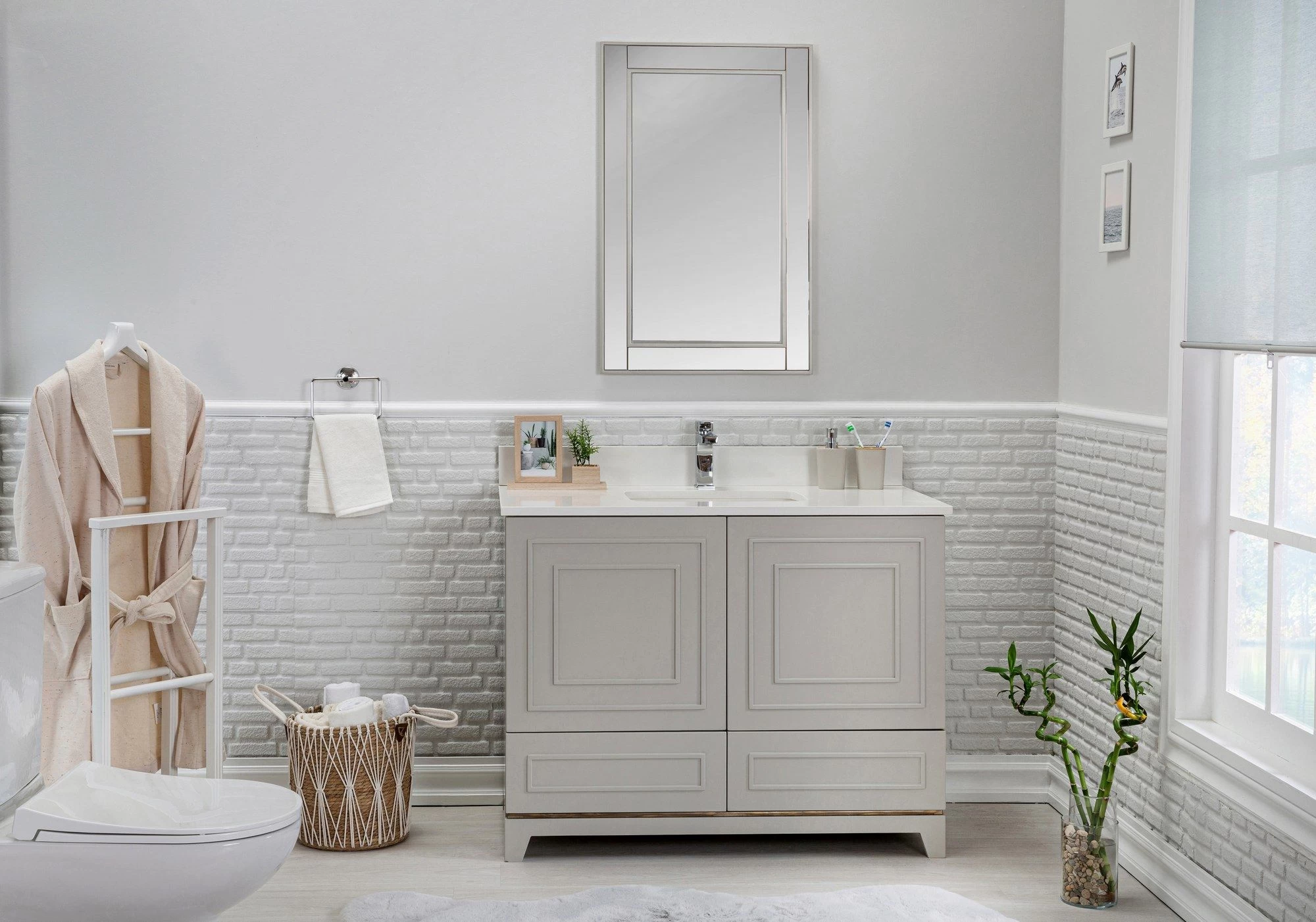 Soyez le premier à laisser votre avis sur “Jussara” Ensemble De Salle De Bain | 2 Pièces | MDF Laqué | Comptoir En Quartz Blanc | Gris” Annuler la réponse