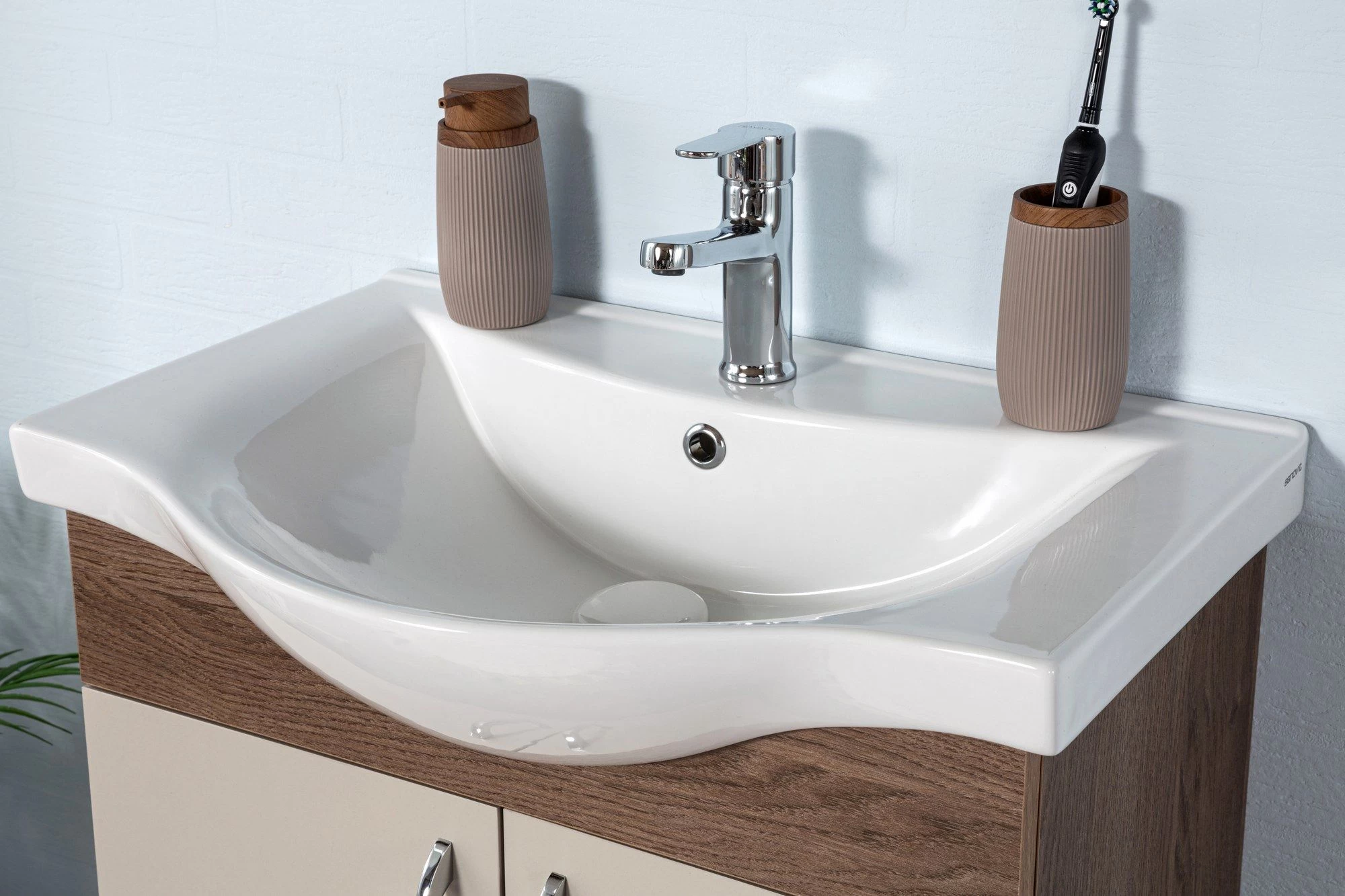 L’ensemble de meubles de salle de bains Jussara est un complément à la fois étonnant et pratique pour toute salle de bains. Cet ensemble complet comprend trois pièces essentielles – un meuble de salle de bain, un miroir et une vasque – toutes conçues pour rehausser le décor de votre salle de bain tout en offrant des solutions de rangement efficaces.Fabriqué avec des matériaux de la plus haute qualité, l’ensemble de meubles de salle de bain Jussara est composé à 100 % de MDF (bois massif) mélaminé d’une épaisseur de 18 mm. Cette construction durable assure longévité et stabilité, ce qui en fait un investissement rentable pour votre salle de bains. L’utilisation d’un revêtement en mélamine ajoute non seulement une touche d’élégance, mais offre également une protection contre l’humidité et l’usure quotidienne.L’une des caractéristiques les plus remarquables de l’ensemble de meubles de salle de bains Jussara est la vasque, fabriquée à 100 % en céramique. Les vasques en céramique ne sont pas seulement attrayantes sur le plan visuel, elles sont également faciles à nettoyer et à entretenir. Grâce à leur surface lisse et non poreuse, le nettoyage est un jeu d’enfant, ce qui vous permet d’économiser du temps et des efforts. En outre, la vasque Jussara est conçue pour une fonctionnalité optimale, offrant un espace généreux pour tous les besoins de la salle de bains.Pour ceux qui apprécient l’attention portée aux détails, l’ensemble de meubles de salle de bains Jussara est équipé d’un système de freinage caché. Cette fonction innovante garantit que les portes et les tiroirs se ferment silencieusement et en douceur, évitant ainsi tout claquement accidentel. Cela ajoute non seulement une touche de luxe mais prolonge également la durée de vie du meuble, en réduisant le risque de dommages au fil du temps.Le miroir de l’armoire inclus dans l’ensemble de meubles de salle de bains Jussara n’est pas seulement un composant fonctionnel mais aussi un ajout élégant. Il sert à la fois de miroir pour vos soins quotidiens et d’espace de rangement pour les petits objets essentiels de la salle de bains. Le design mural crée un look élégant et moderne, maximisant l’espace et permettant un nettoyage facile en dessous.Pour compléter son design contemporain, l’ensemble de meubles de salle de bains Jussara comporte des poignées chromées. Ces poignées n’ajoutent pas seulement une touche de sophistication mais offrent également une prise confortable, facilitant l’ouverture et la fermeture des tiroirs et des armoires. Le meuble-lavabo Jussara, avec ses dimensions compactes de 65 cm de largeur, 15 cm de hauteur et 36 cm de profondeur, est parfait pour les petites salles de bains ou comme solution de rangement supplémentaire dans les grands espaces. Sa couleur marron ajoute de la chaleur et de l’élégance à tout décor de salle de bain, créant une atmosphère accueillante et invitante.En résumé, l’ensemble de meubles de salle de bain Jussara est un choix polyvalent et élégant pour toute salle de bain. Grâce à ses matériaux de haute qualité, dont un revêtement en mélamine à 100