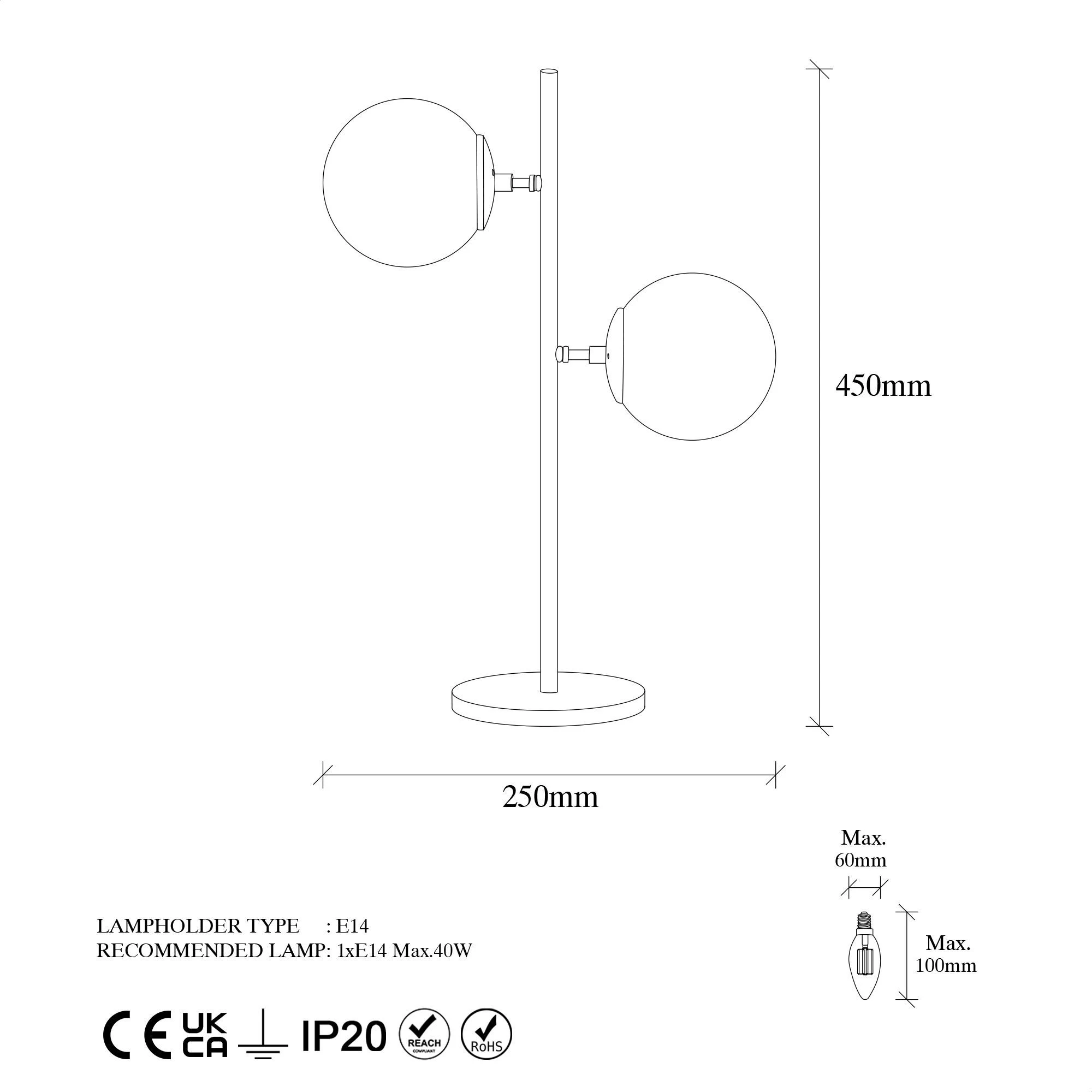 La lampe de table Fulgor est une solution d’éclairage élégante et polyvalente qui associe un corps métallique élégant à un couvercle en verre, apportant un charme vintage à n’importe quel espace. Avec son design unique et ses caractéristiques clés, la lampe de table Fulgor ne manquera pas de rehausser l’ambiance de votre maison ou de votre bureau.L’une des caractéristiques remarquables de la lampe de table Fulgor est son corps en métal, qui non seulement ajoute de la durabilité et de la robustesse à la lampe, mais lui confère également un aspect élégant et intemporel. Le corps en métal confère à la lampe un attrait à la fois moderne et vintage, ce qui en fait un complément polyvalent à tout style de décoration intérieure.Une autre caractéristique qui distingue la lampe de table Fulgor est son capuchon en verre, qui ajoute une sophistication et une touche d’élégance à l’ensemble du design. Le couvercle en verre crée une belle lumière diffuse, parfaite pour créer une atmosphère confortable et accueillante dans n’importe quelle pièce.La lampe est également dotée d’une plaque de base en métal, qui ajoute de la stabilité à l’ensemble de la structure. Le diamètre de 17 cm du socle garantit que la lampe reste bien en place sur n’importe quelle surface, éliminant ainsi le risque de basculement ou de glissement accidentel.Mesurant 25 x 18 x 57 cm, la lampe à poser Fulgor a la taille idéale pour être placée sur une table d’appoint, une table de chevet ou un bureau. Avec un diamètre total de 18 cm, elle est suffisamment compacte pour être placée dans les petits espaces sans les encombrer.La lampe est livrée avec un câble de 200 cm de long, permettant une mise en place facile et une flexibilité dans le positionnement de la lampe en fonction de vos préférences. En termes de fonctionnalité, la lampe de table Fulgor est conforme à la norme IP20, offrant une protection contre les objets solides et les petites particules, ce qui la rend adaptée à une utilisation en intérieur. La lampe est équipée de deux types de douilles E14, permettant une puissance maximale de 40 W, offrant une luminosité suffisante pour lire, travailler ou créer une ambiance chaleureuse.Avec sa couleur vintage, la lampe de table Fulgor ajoute une touche d’élégance et de nostalgie à n’importe quelle pièce. En conclusion, la lampe de table Fulgor est une solution d’éclairage élégante et polyvalente qui combine un corps en métal, un capuchon en verre et une couleur vintage pour créer un design unique et élégant. Avec sa construction durable, son bouton marche/arrêt pratique et sa taille parfaite, cette lampe est une solution d’éclairage fonctionnelle et esthétique.
