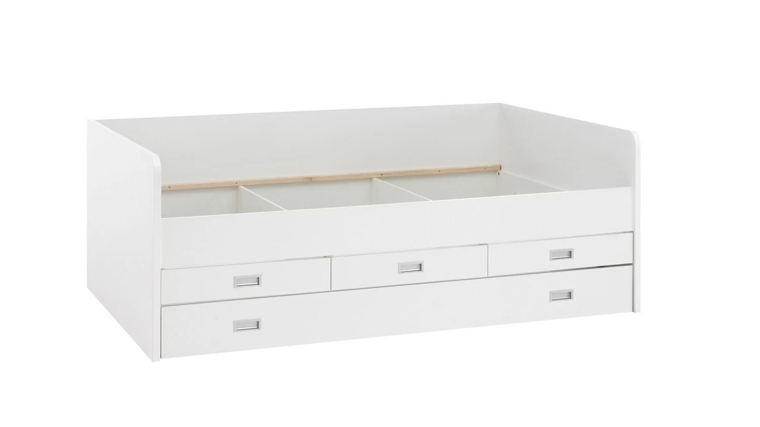 Le lit lui-même est fait d’aggloméré de couleur blanche et comporte, en plus du tiroir de lit, 3 tiroirs pratiques où vous pouvez ranger proprement votre linge de lit ou vos vêtements. Vous pouvez trouver d’autres meubles de cette série sur notre site web !