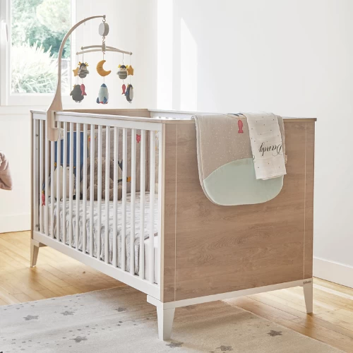 Combinez espace de rangement et confort avec les meubles de la gamme Ciana. Ils sont fabriqués en panneaux de particules et finis dans un décor de chêne avec des accents blancs. Bien entendu, la chambre de bébé n’est pas complète sans un lit bébé. Le sommier à lattes de ce lit peut être installé à deux hauteurs différentes. Pour les nouveaux-nés, vous pouvez monter le sommier à lattes en hauteur, puis l’abaisser. Dès l’âge de 3 ans, votre enfant peut entrer et sortir du lit tout seul, et vous pouvez remplacer les barrières de lit par des pans de lit qui sont également disponibles sur notre site. De cette façon, vous transformez le lit de bébé en un lit de jeune enfant. Un matelas de 70 par 140 cm peut être trouvé sur notre site.
