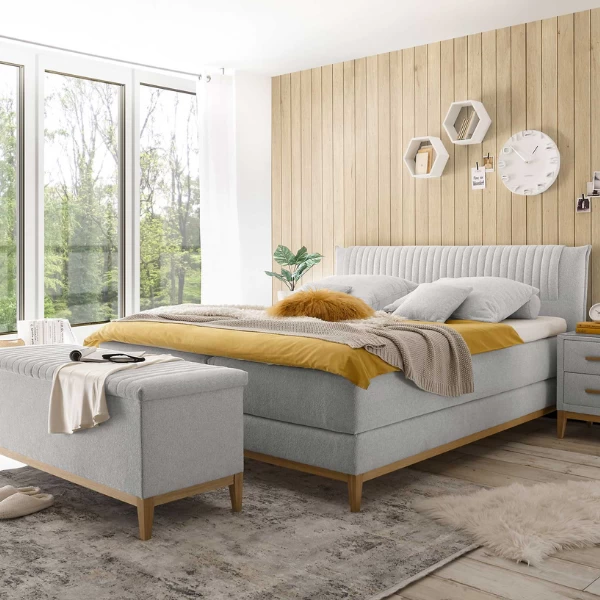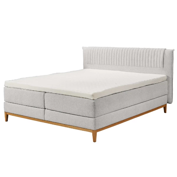 Entrez dans l’esprit “hygge” avec les lits boxsrping Arhus. Ce lit double en aggloméré est recouverte en polyester gris clair. La tête de lit rembourrée donne au lit un aspect frappant sans être écrasant. Les pieds en bois apportent un accent chaleureux. Le boxspring est équipé de deux matelas à ressorts ensachés T25 H2 à 9 zones et d’un sur-matelas de 160x200cm. Vous avez donc tout ce dont vous avez besoin pour profiter d’une nuit de sommeil réparatrice. Chaque côté du lit peut supporter une charge allant jusqu’à 120 kg. Découvrez les autres variantes de couleurs de ce lit sur notre site web !