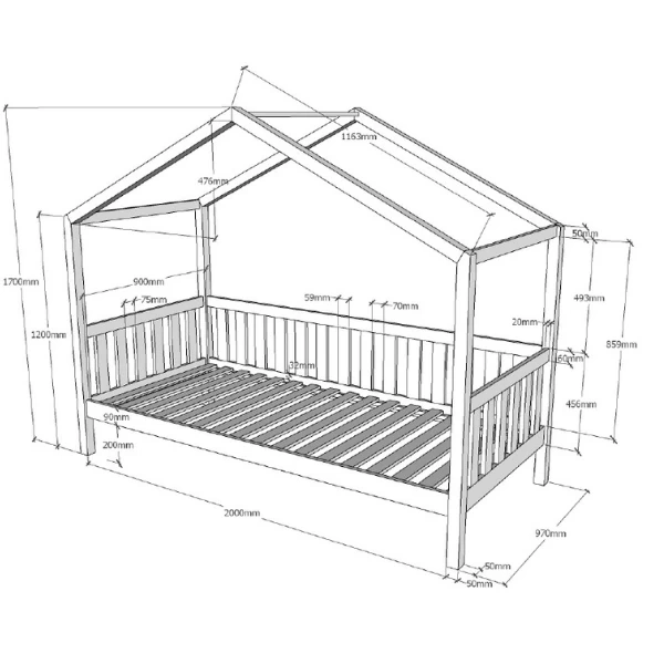 Vous êtes à la recherche d’un lit cabane élégant et minimaliste ? Ce lit blanc de la collection Dallas vous plaira assurément. Réalisé en pin massif, avec matelas (épaisseur 10 cm) de 90×200 cm inclus. Le lit cabane Dallas est pourvu de barrières de lit intégrées (3 côtés) et vous est livré avec sommier à lattes. Vous pouvez également acheter un tiroir de lit assorti sur notre site pour compléter votre nouveau lit. Le lit cabane Dallas est aussi offert en couleur naturelle et anthracite.