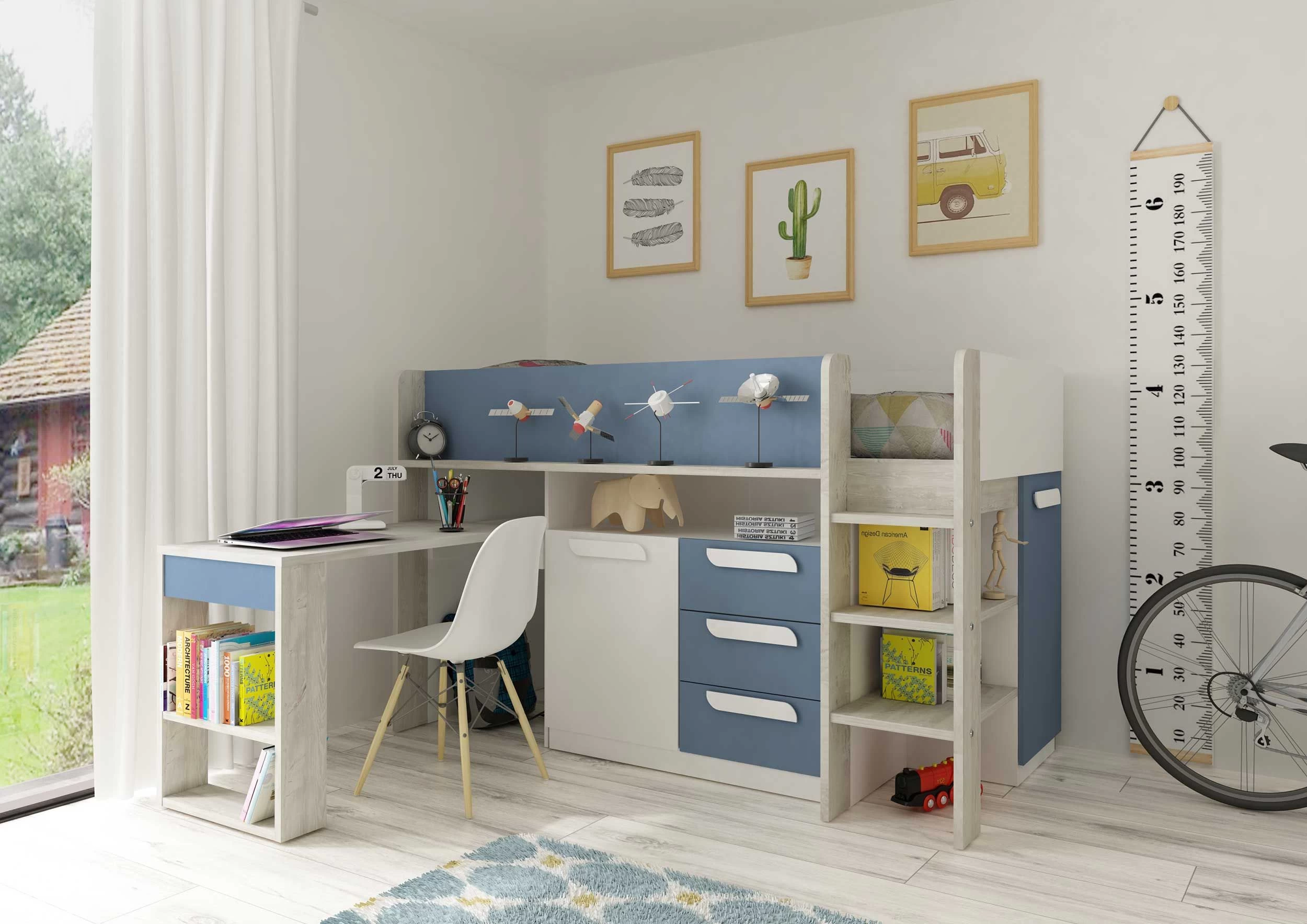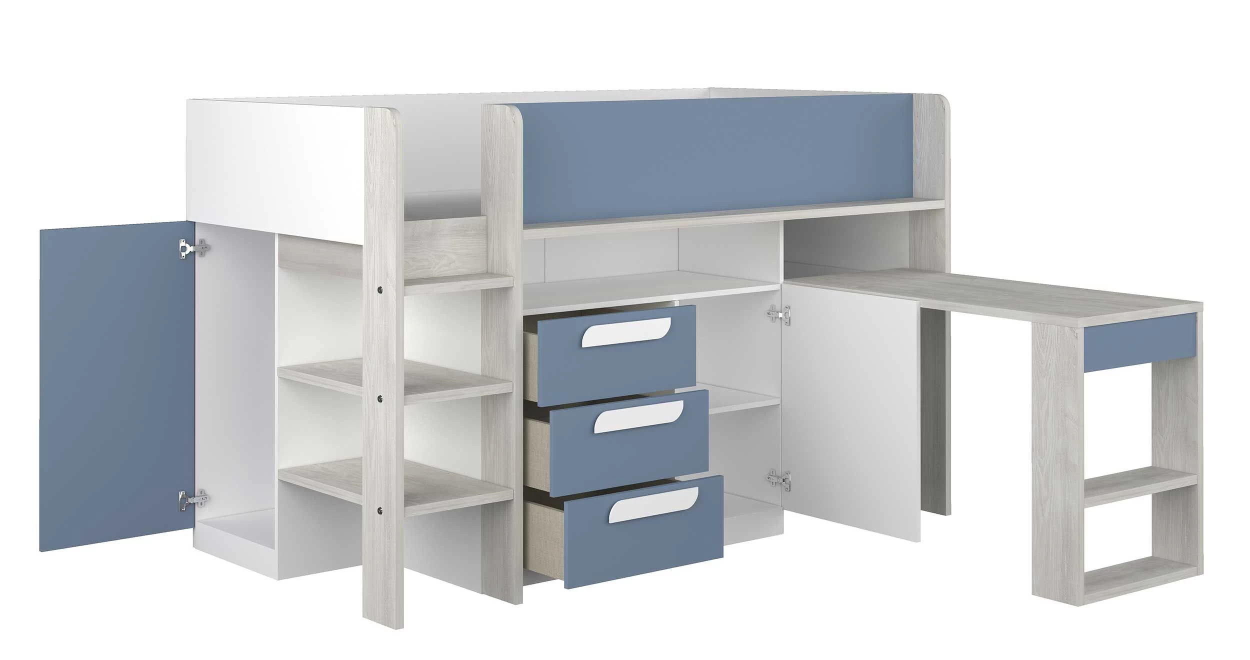 Le lit combiné Beau est réalisé en aggloméré. Les détails en bleu fumé installent une déco riche en couleur dans la chambre enfant. Ce lit est également offert en d’autres coloris. Découvrez toutes les options dans notre boutique en ligne et trouvez votre bonheur !