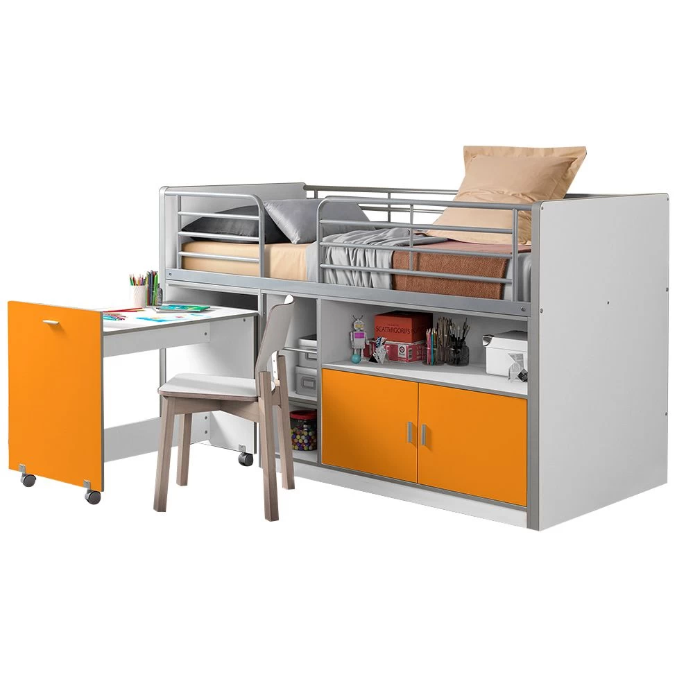 Le lit combiné Bonny au design moderne est disponible en plusieurs couleurs vives. Ce lit est embelli de quelques touches d’orange et est également équipé d’un bureau à roulettes avec 2 petites armoires et 1 niche. L’espace nuit est facile à accéder grâce à l’escalier et les bords surélevés garantissent la sécurité de votre bout de chou. Ce lit enfant convient aux enfants âgés de 6 ans et plus. Le lit peut se monter uniquement comme sur les photos.