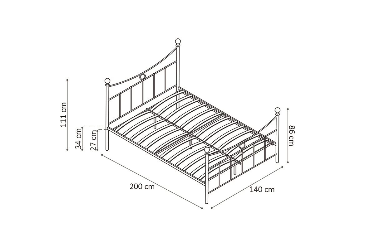Liza a un design de rêve qui donne à chaque pièce une atmosphère romantique. Il s’agit d’un lit double de 140 x 200 cm qui est fabriqué en métal noir. Le lit a une tête et une extrémité hautes respectivement de 111 et 86 cm.
